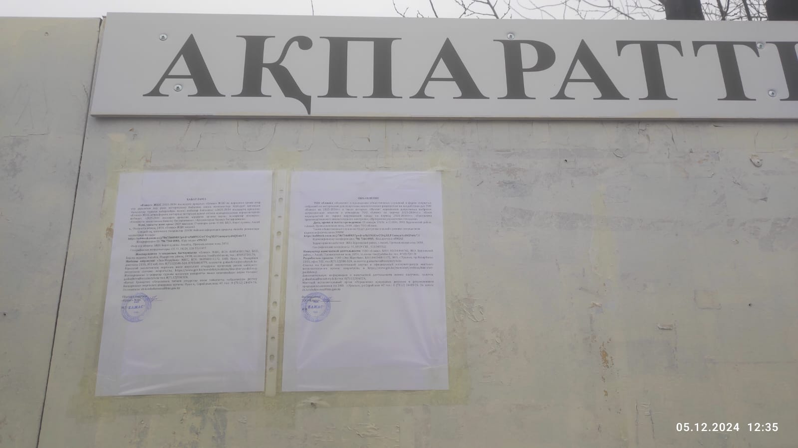 6.3. расположение мест, специально предназначенных для Размещения печатных объявлений (доски объявлений): Доска объявлений в ЗКО, Бурлинский район, г.Аксай по адресу пр.Абай 3/1, здание акимата г.Аксай