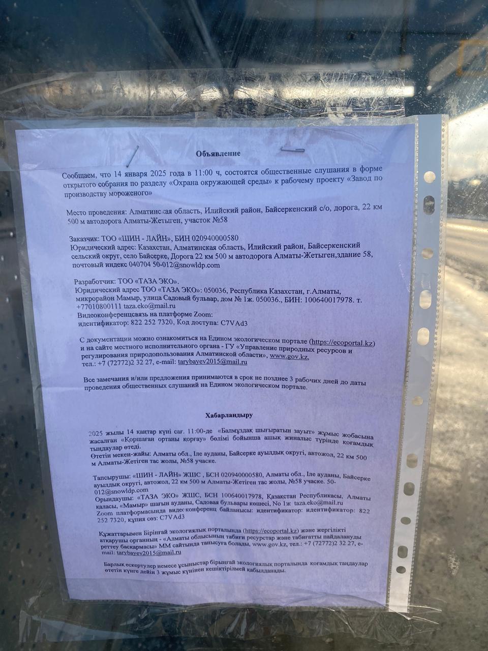 3. Общественные слушания организованны: Управление природных ресурсов и регулирования природопользования Алматинской области, 329267eco@mail.ru,