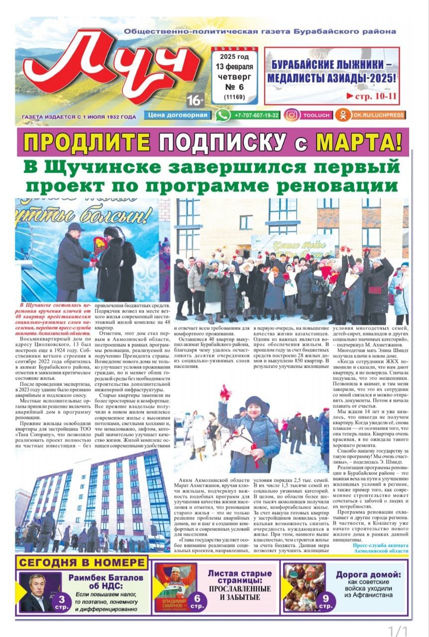 6.1. Наименование газеты, где будет размещено объявление: газета Бурабай