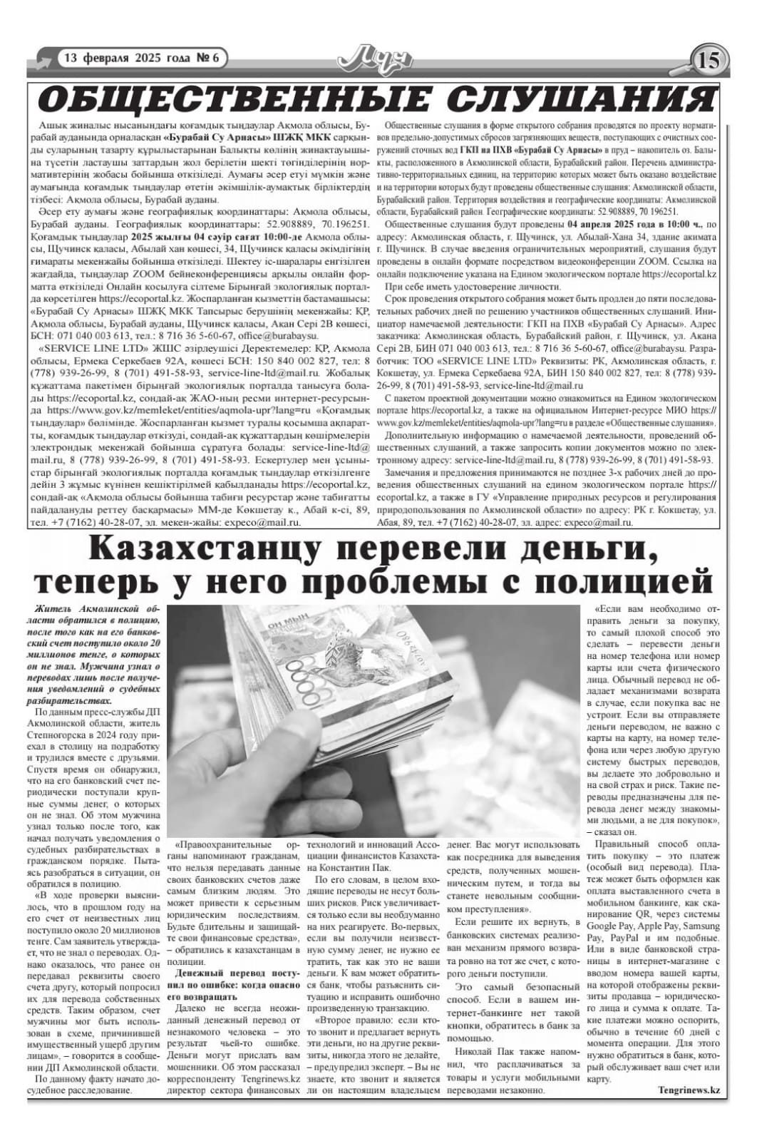 6. Объявление о проведении общественных слушаний на казахском и русском языках будет распространено следующими способами: