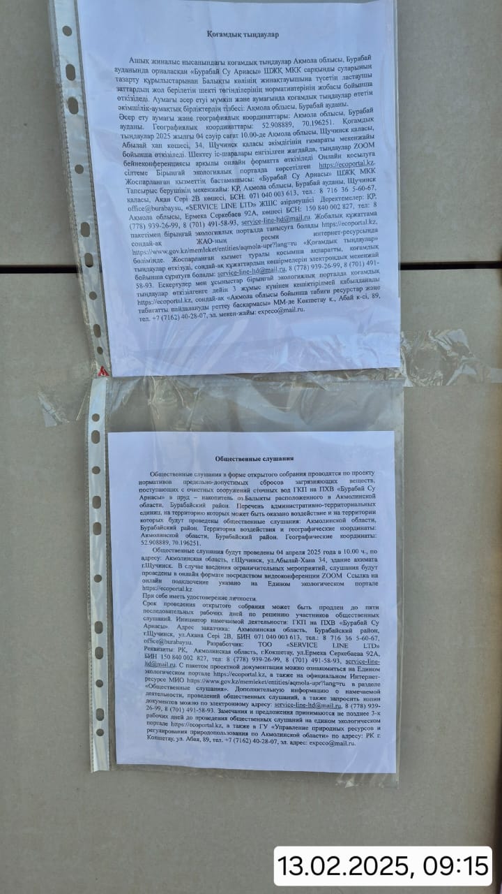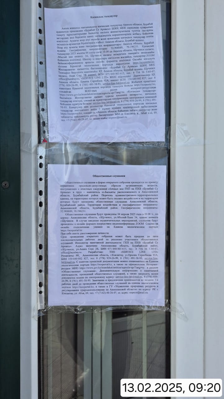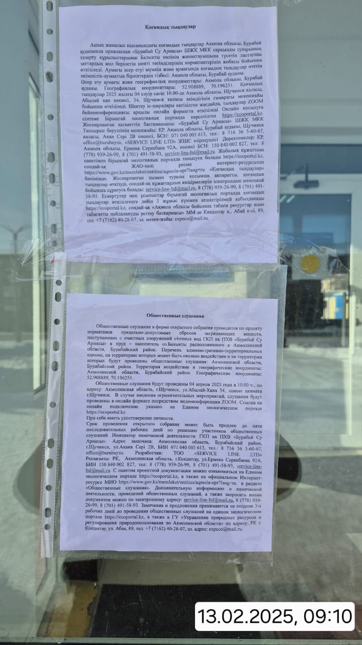 3. Общественные слушания организованны: Управление природных ресурсов и регулирования природопользования Акмолинской области, expeco@mail.ru,
