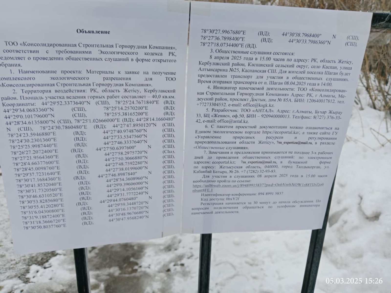3. Общественные слушания организованны: Главный специалист УПР и ПР Жетысуйской области, 7su_expertiza@mail.ru,
