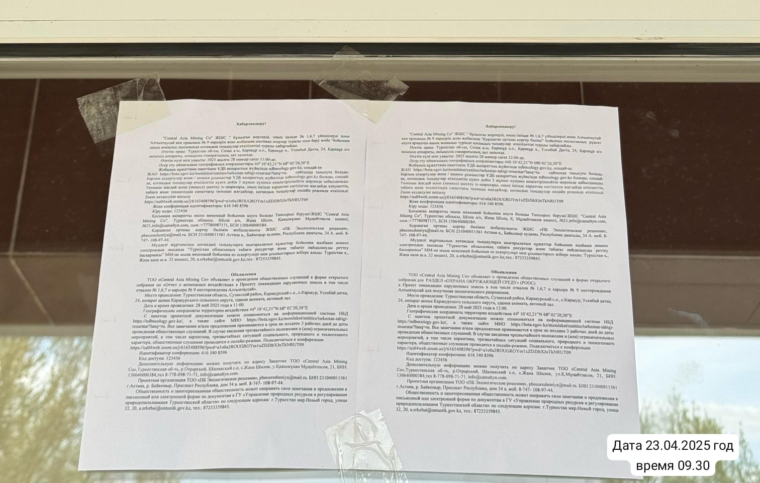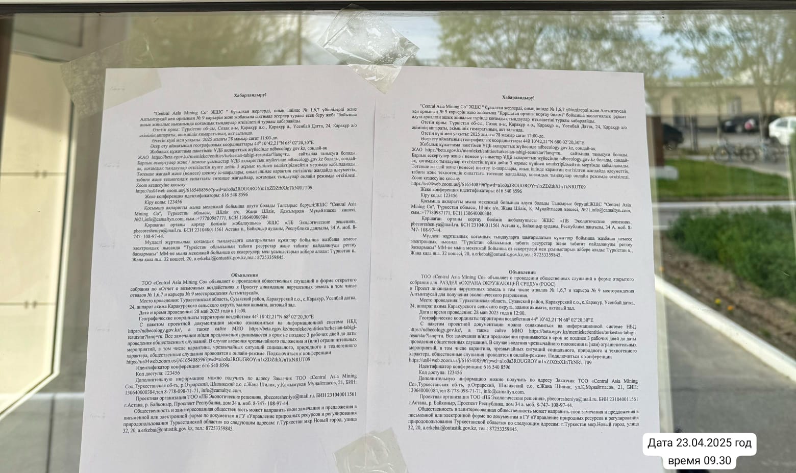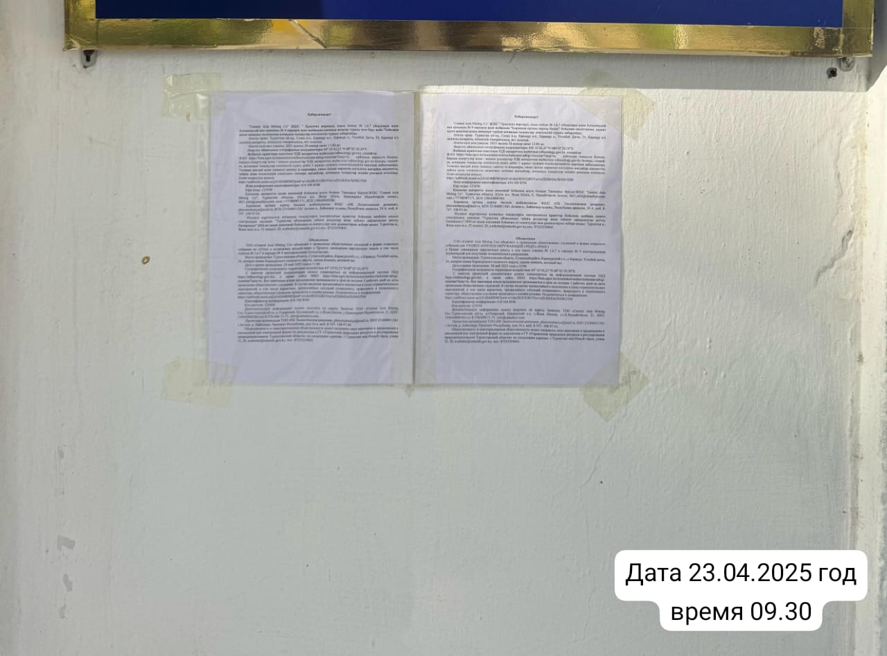 6. Объявление о проведении общественных слушаний на казахском и русском языках будет распространено следующими способами: