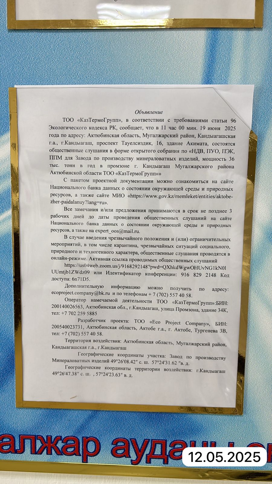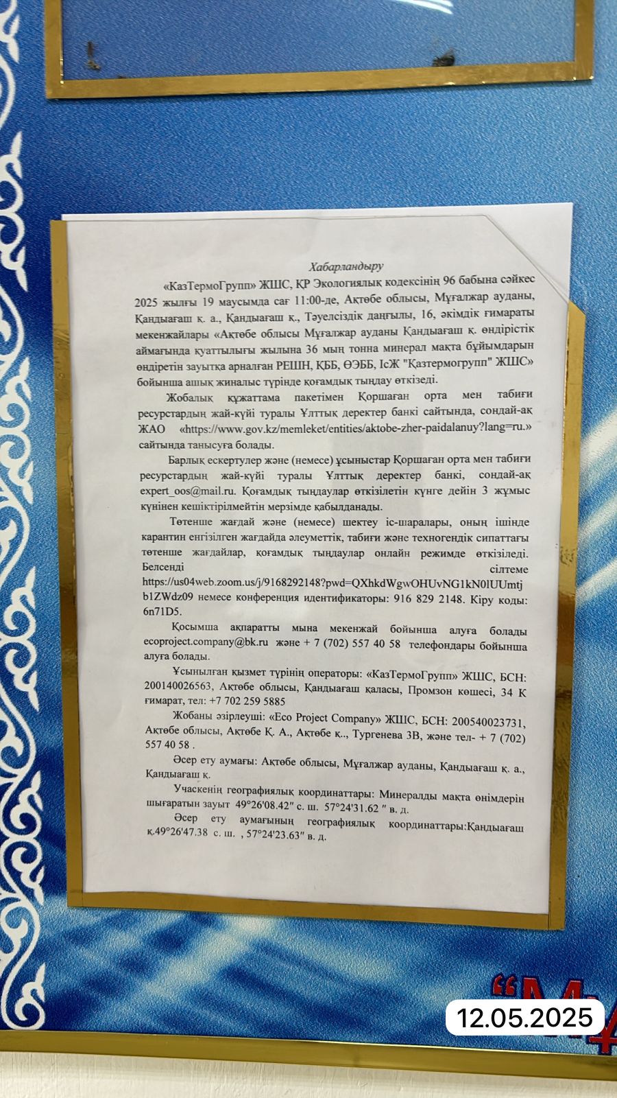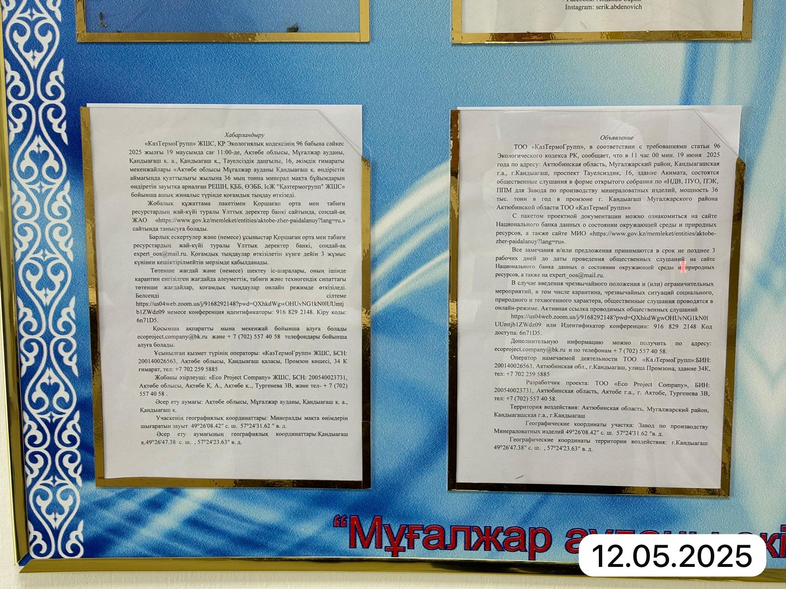Ответ:«ҚазТермоГрупп» ЖШС экологы – Ыбырай А.: иә, жұмыс жасап тұр.