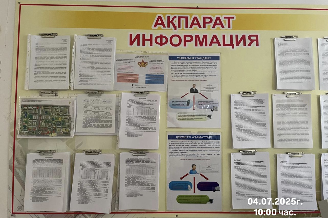 6.3. расположение мест, специально предназначенных для Размещения печатных объявлений (доски объявлений): доска объявления Городской акимат города Сатпаев пр.Сатпаева,108
