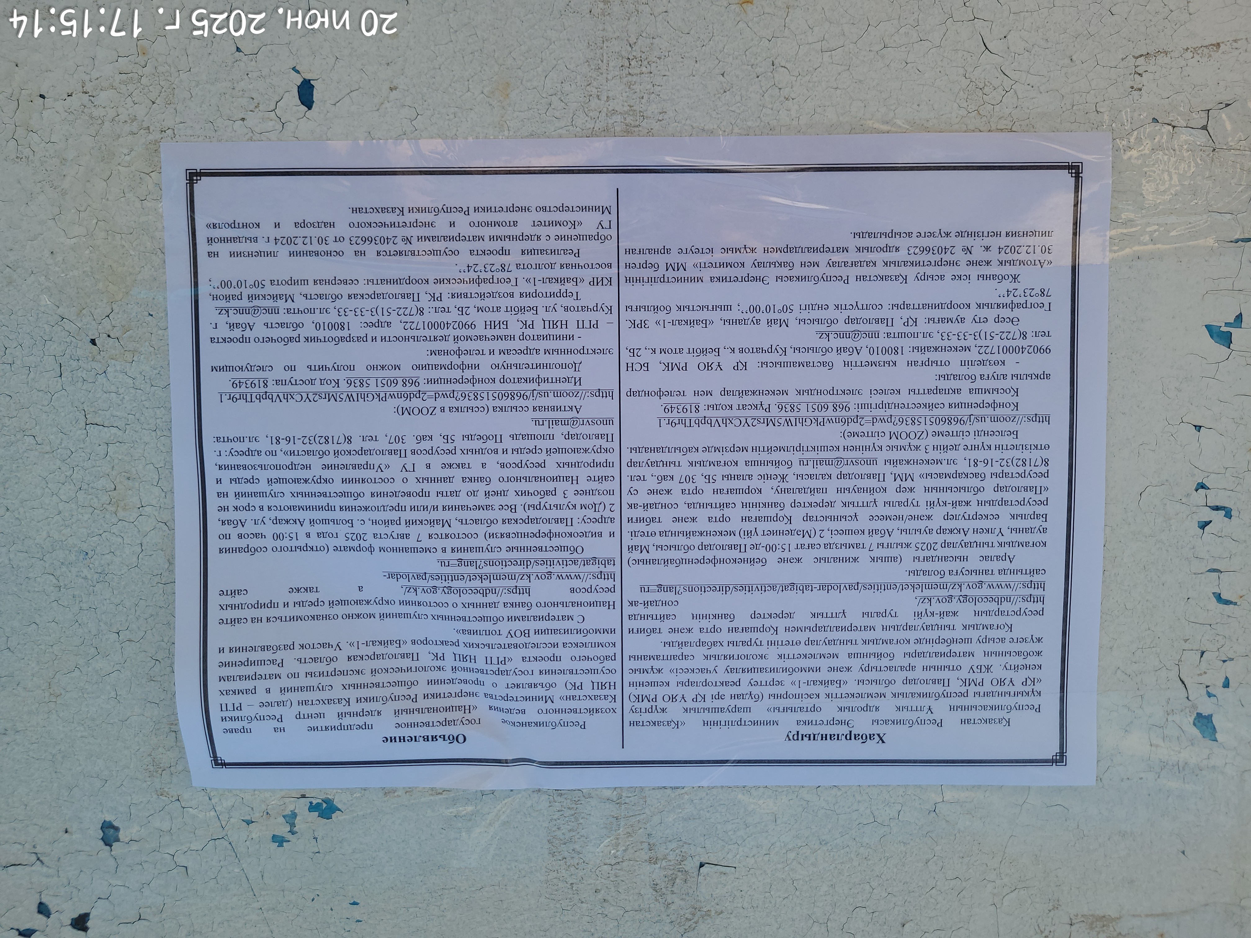 6. Объявление о проведении общественных слушаний на казахском и русском языках будет распространено следующими способами: