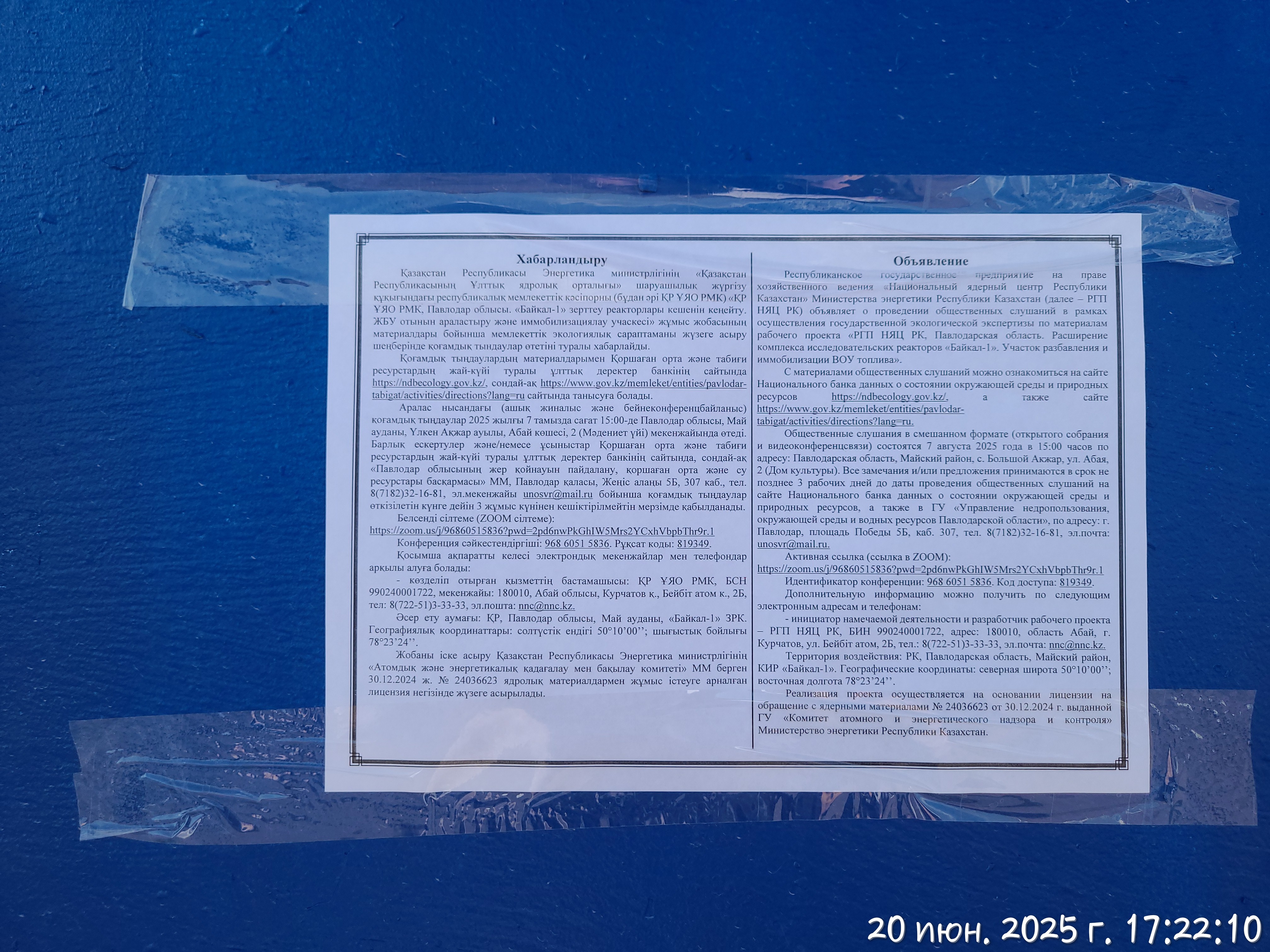 1.4. Описание для подключения к онлайн трансляции при прохождении общественного слушания: Время: 7 авг. 2025 03:00 PM Алматы Подключиться к конференции Zoom https://zoom.us/j/96860515836?pwd=2pd6nwPkGhIW5Mrs2YCxhVbpbThr9r.1 Идентификатор конференции: 968 6051 5836 Код доступа: 819349