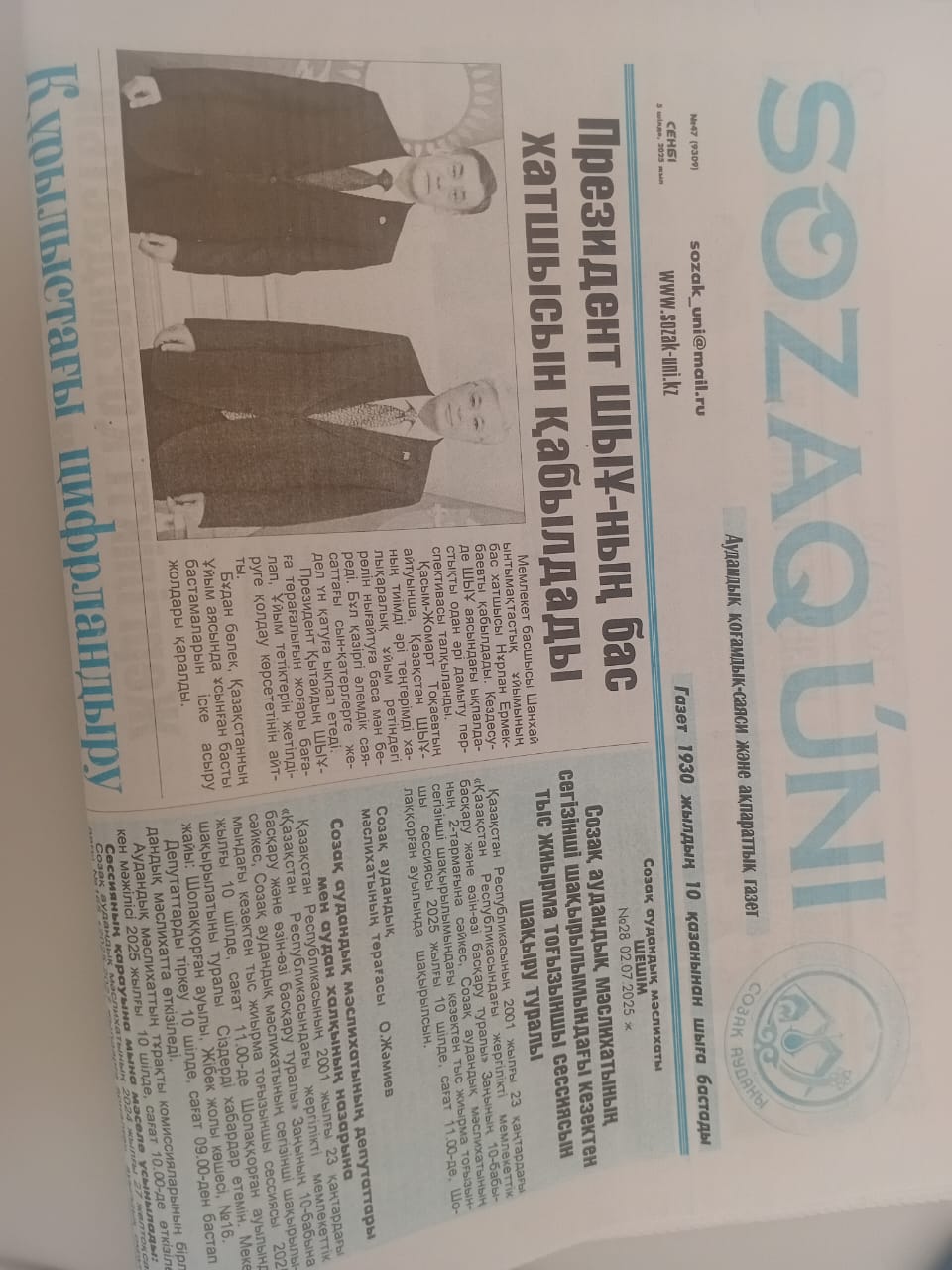 6.1. Наименование газеты, где будет размещено объявление: Созақ үні