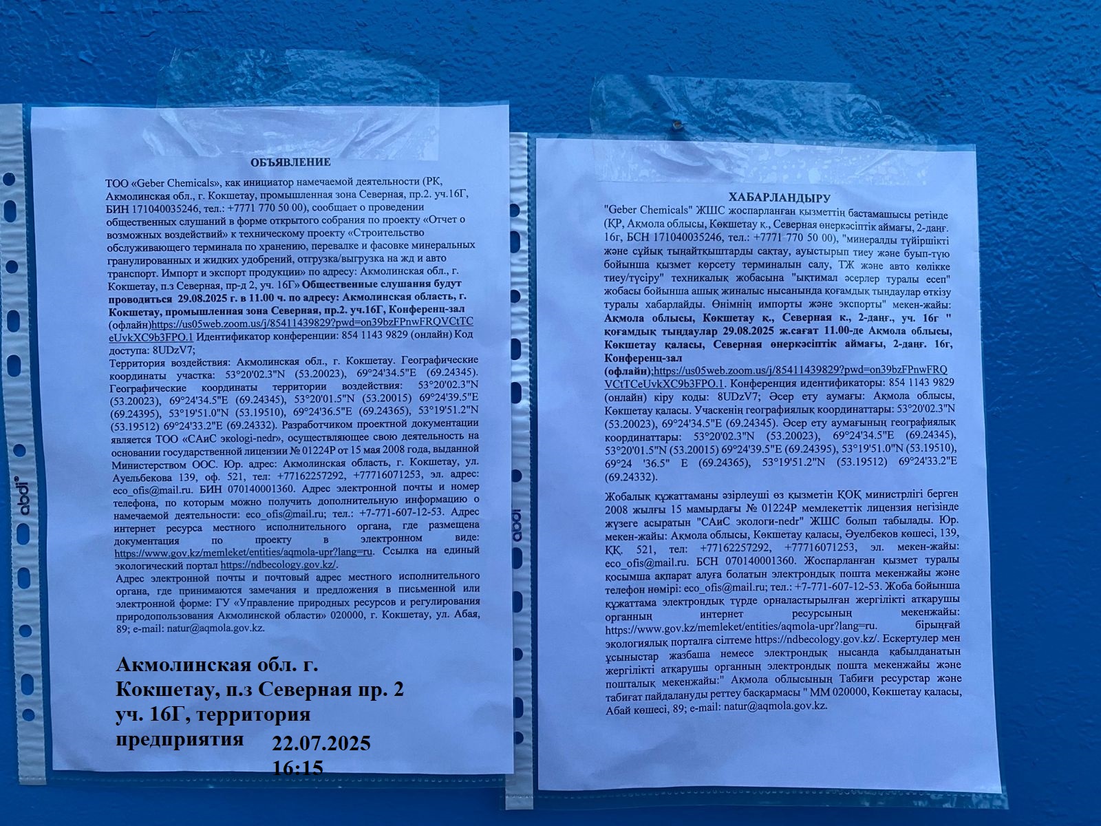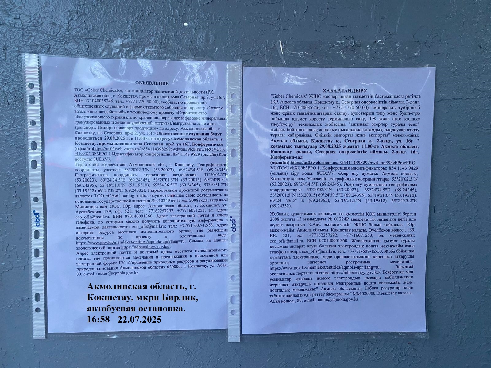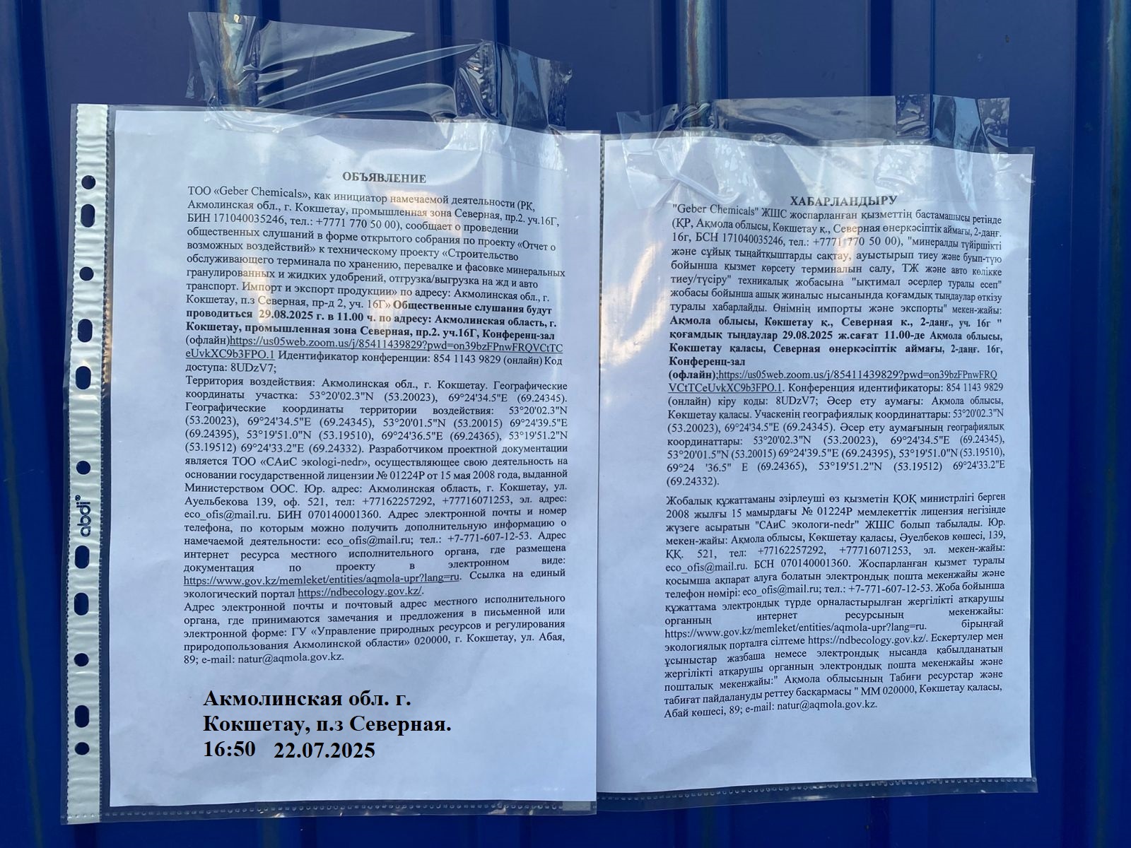 3. Общественные слушания организованны: Управление природных ресурсов и регулирования природопользования Акмолинской области, expeco@mail.ru,
