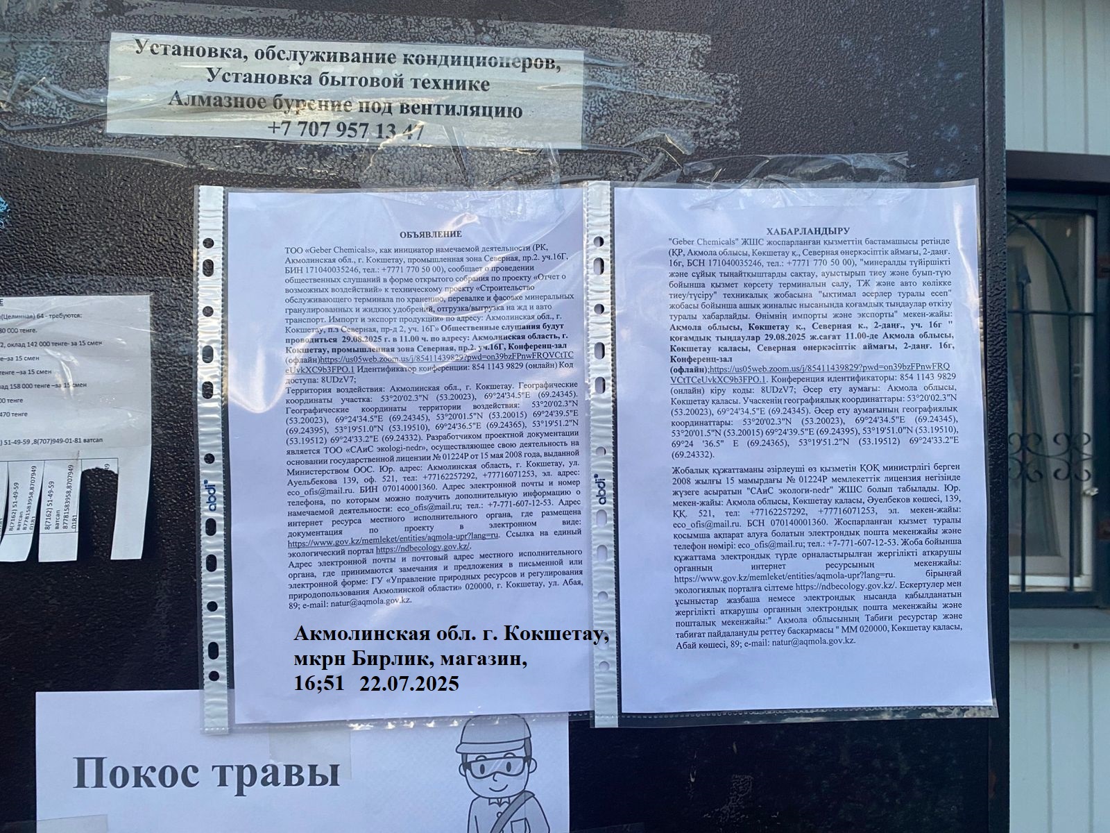6. Объявление о проведении общественных слушаний на казахском и русском языках будет распространено следующими способами: