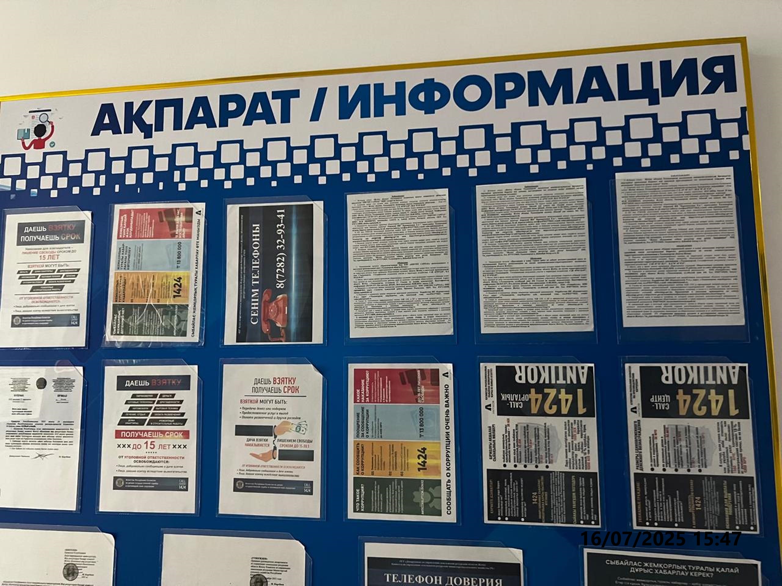 6.3. расположение мест, специально предназначенных для Размещения печатных объявлений (доски объявлений): Доска объявлений Акимата