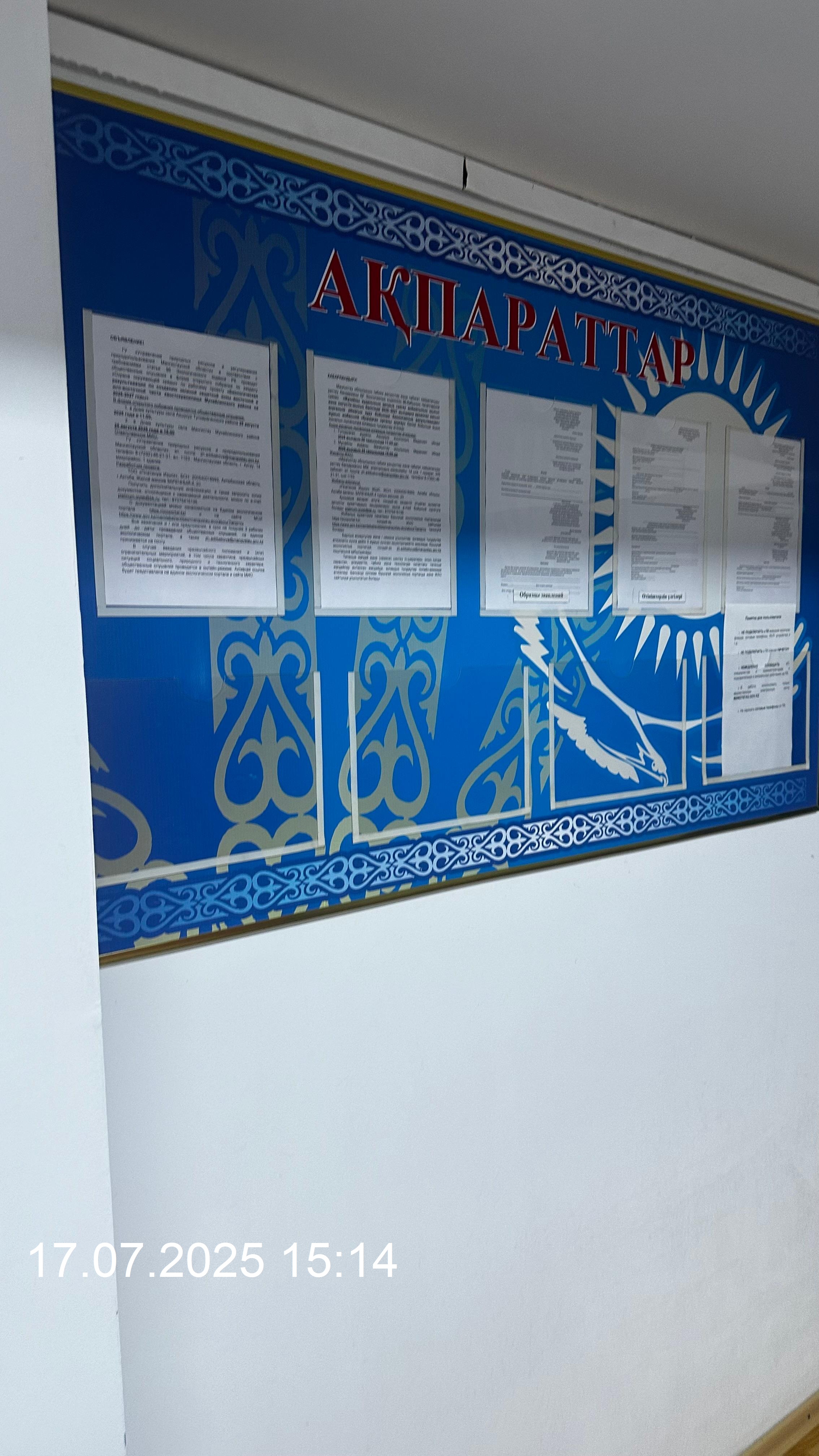 6.3. расположение мест, специально предназначенных для Размещения печатных объявлений (доски объявлений): доска объявлений сельских акиматов