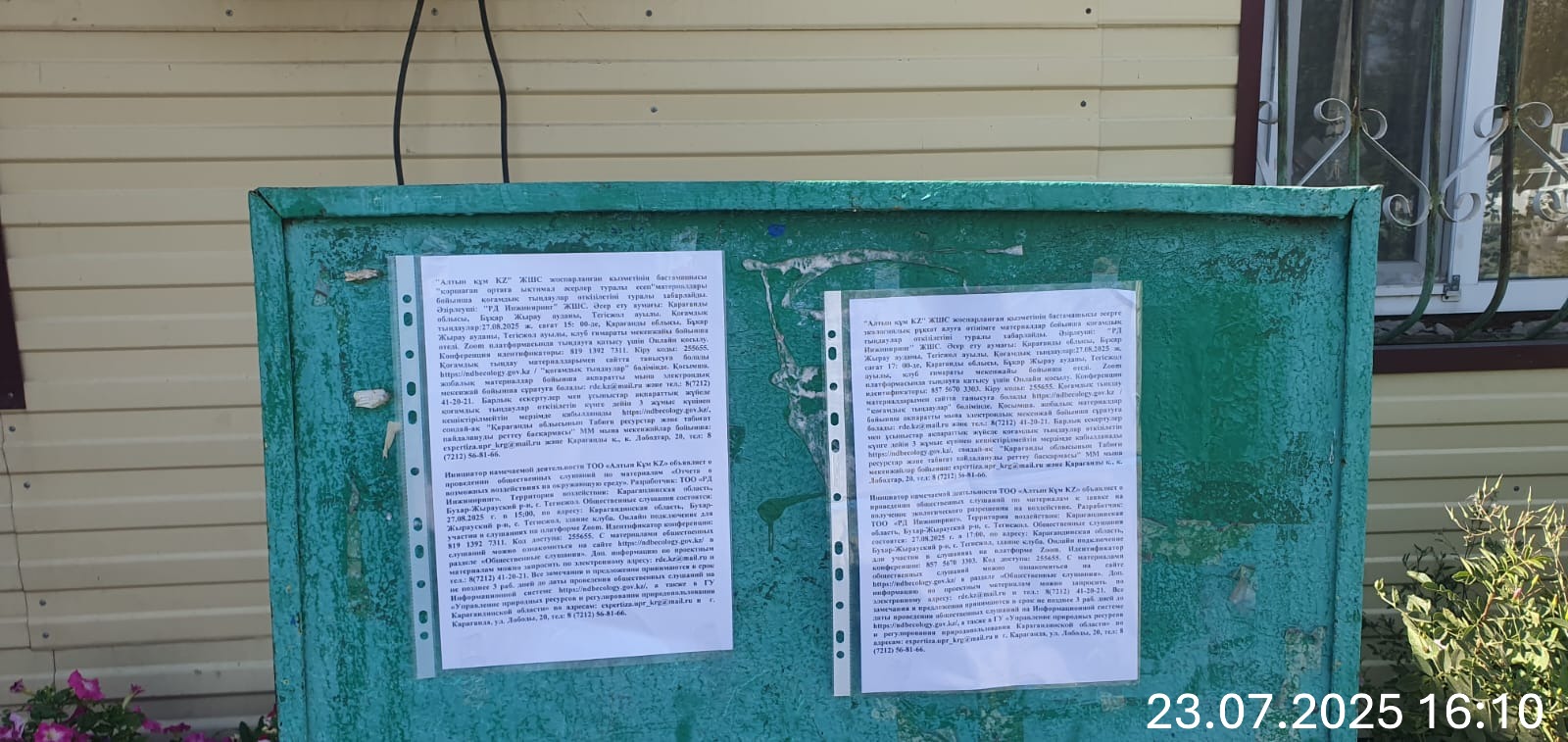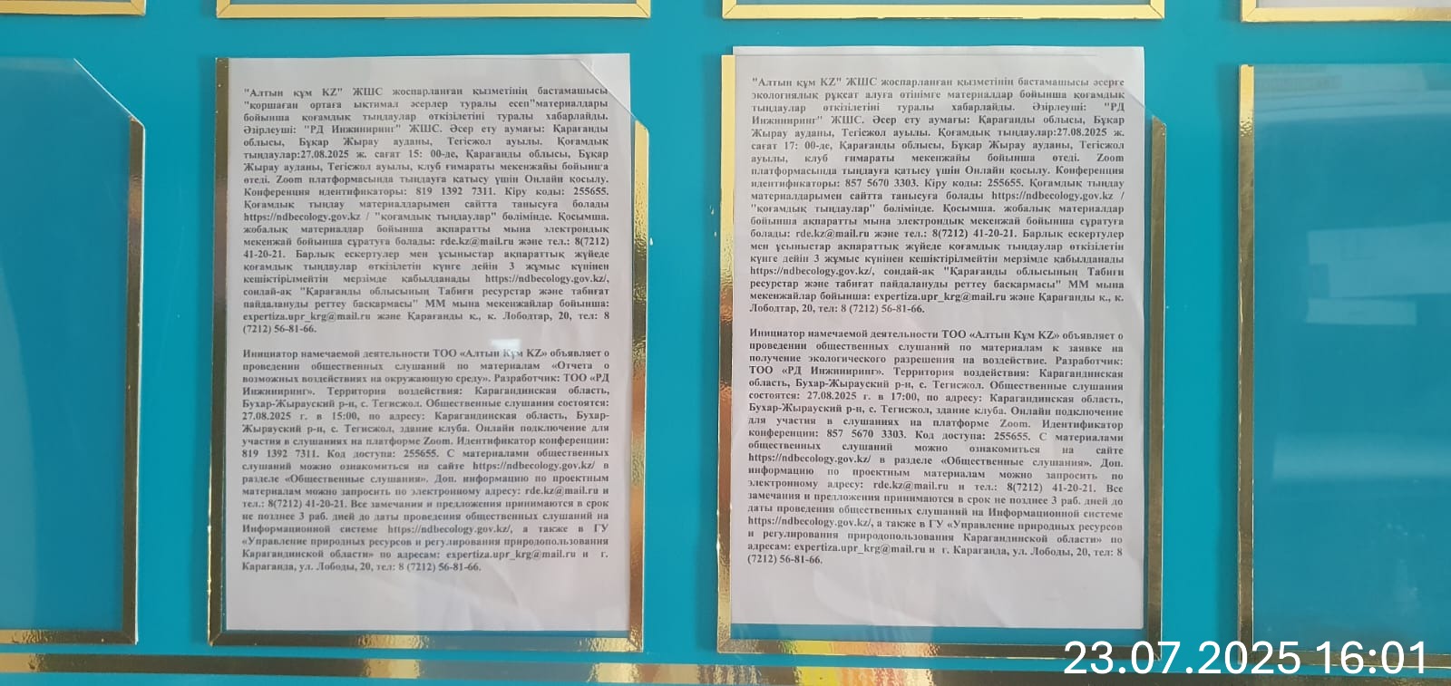3. Общественные слушания организованны: Управление природных ресурсов и регулирования природопользования Карагандинской области, expertiza.upr_krg@mail.ru,