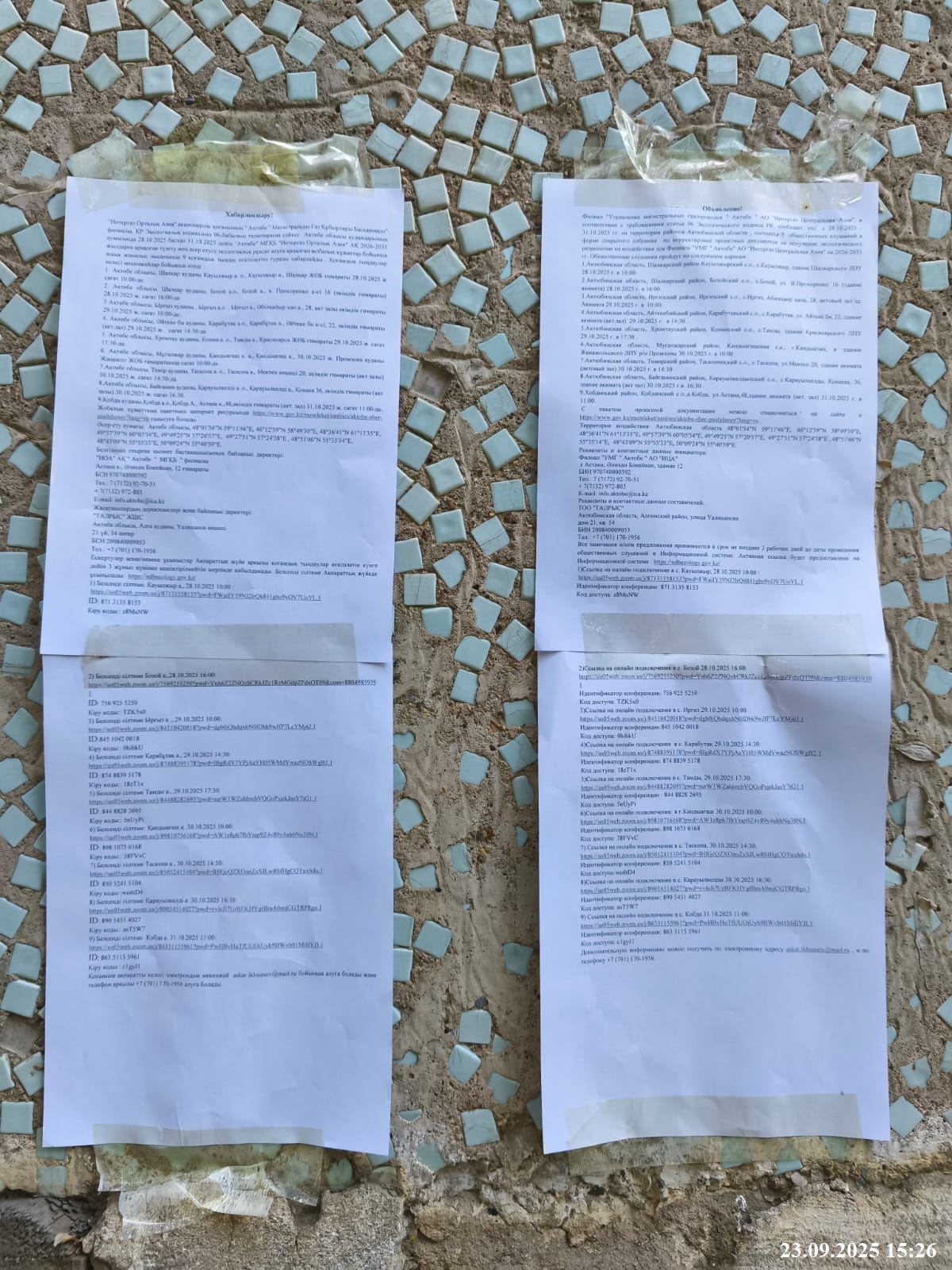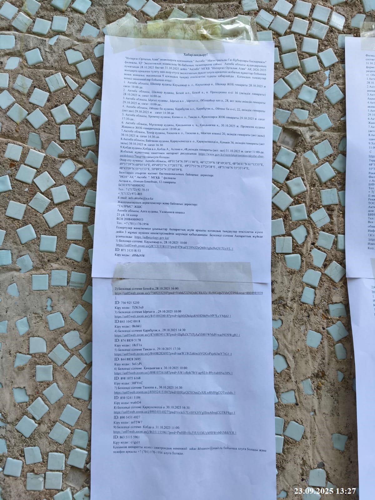 6. Объявление о проведении общественных слушаний на казахском и русском языках будет распространено следующими способами: