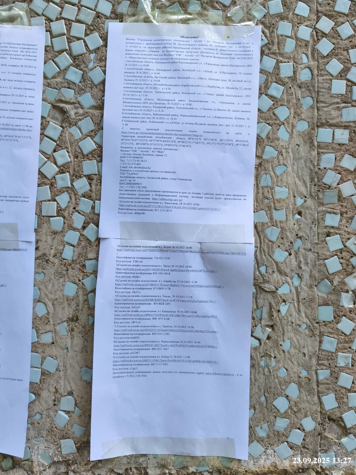 3. Общественные слушания организованны: Управление природных ресурсов и регулирования природопользования Актюбинской области, expert_oos@mail.ru,