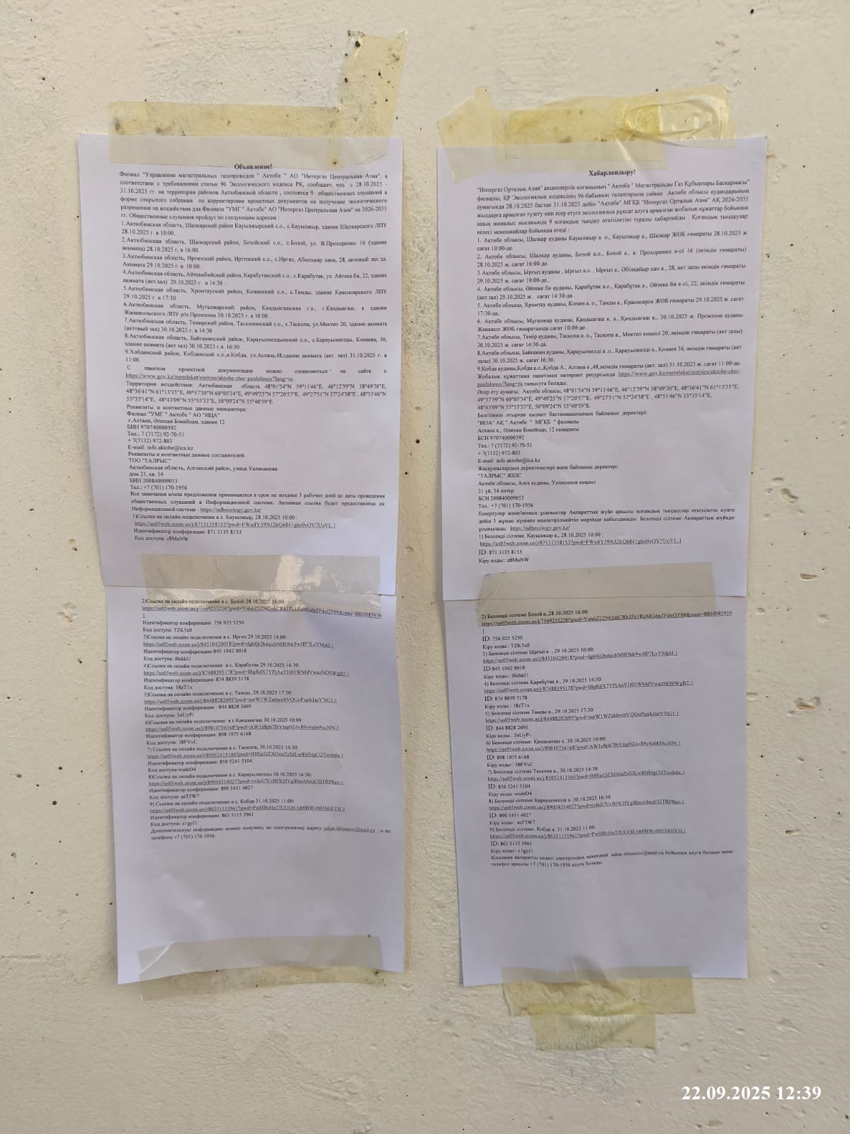6. Объявление о проведении общественных слушаний на казахском и русском языках будет распространено следующими способами: