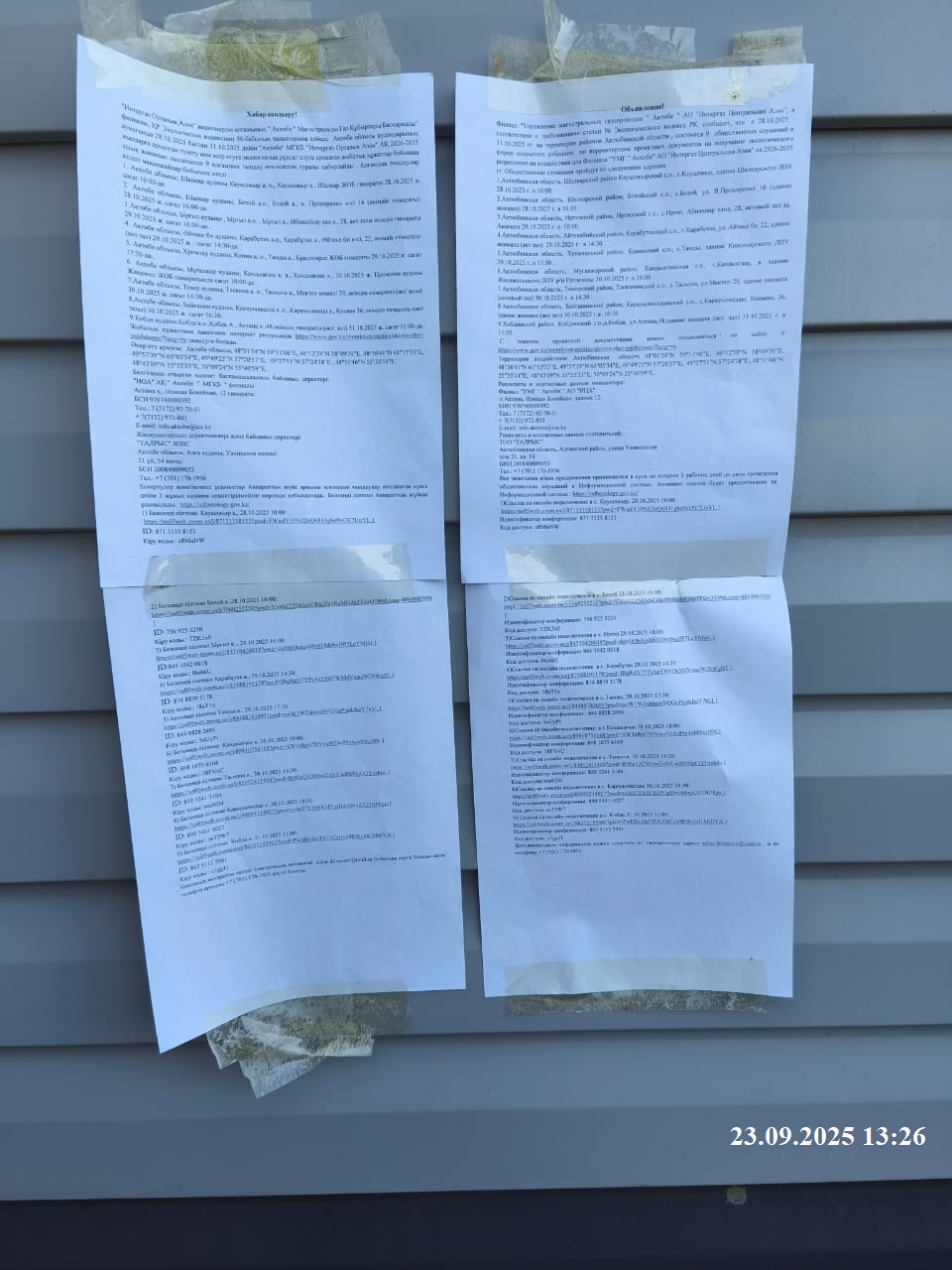 6. Объявление о проведении общественных слушаний на казахском и русском языках будет распространено следующими способами: