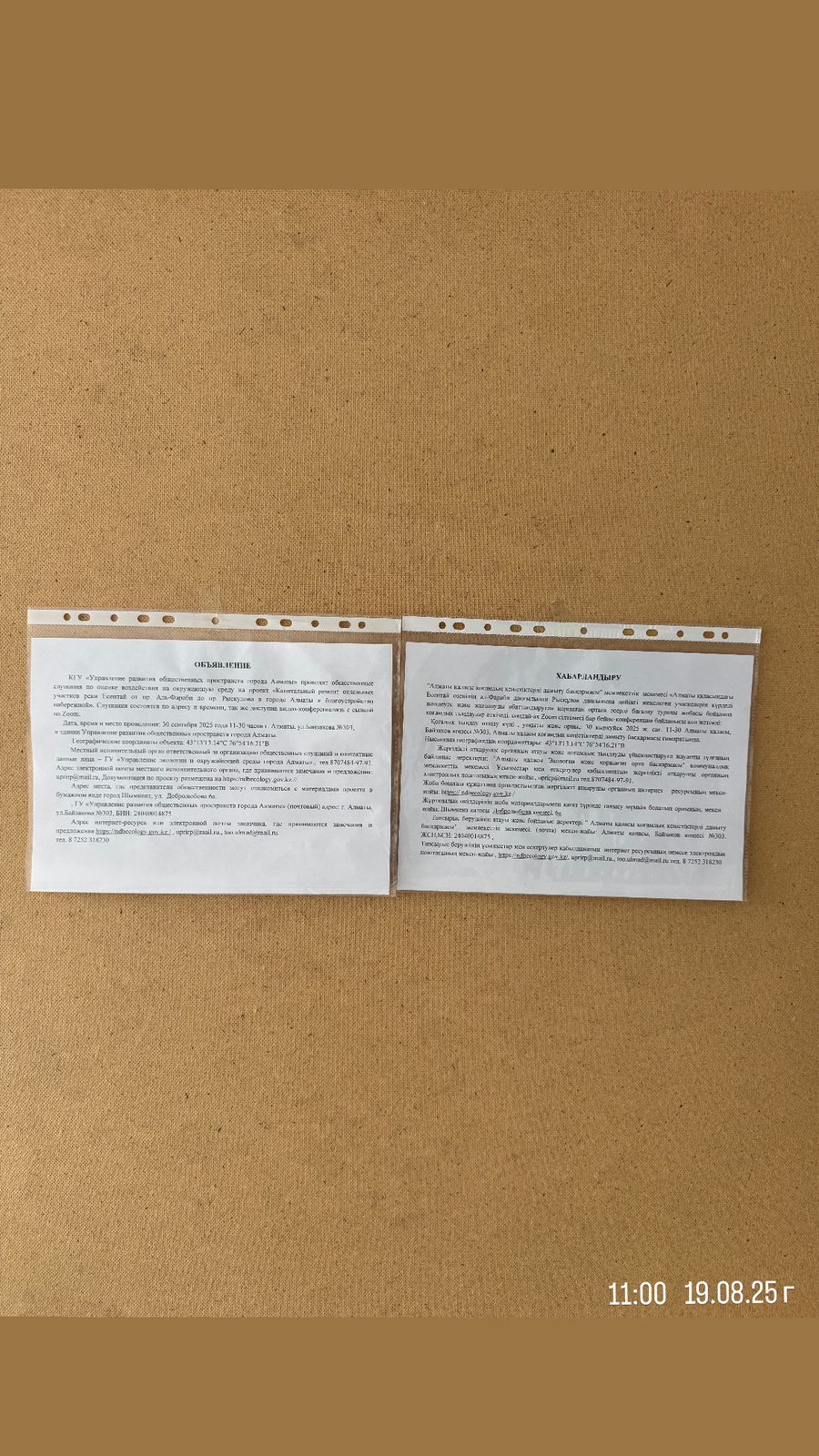 3. Общественные слушания организованны: Управление зеленой экономики города Алматы, uprirp@mail.ru,