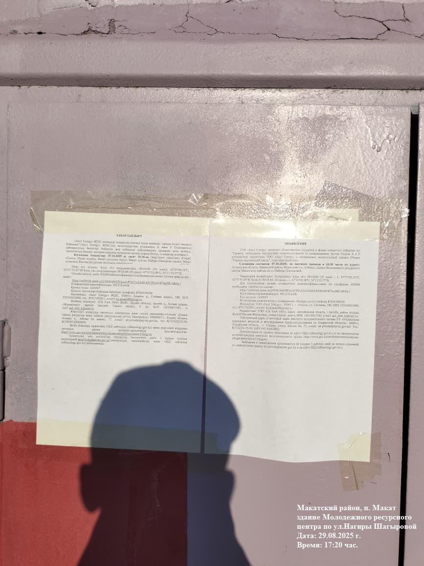 6. Объявление о проведении общественных слушаний на казахском и русском языках будет распространено следующими способами:
