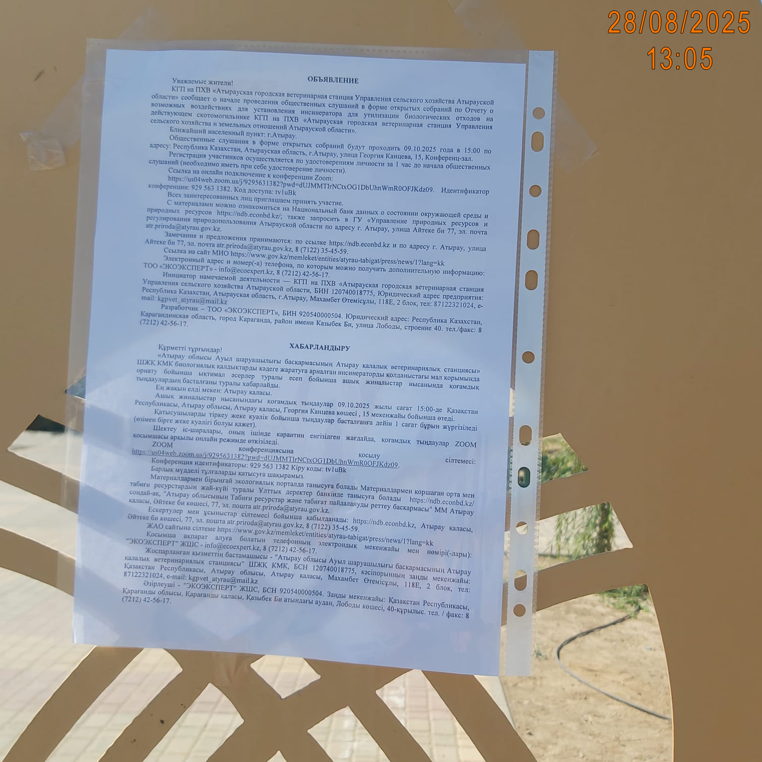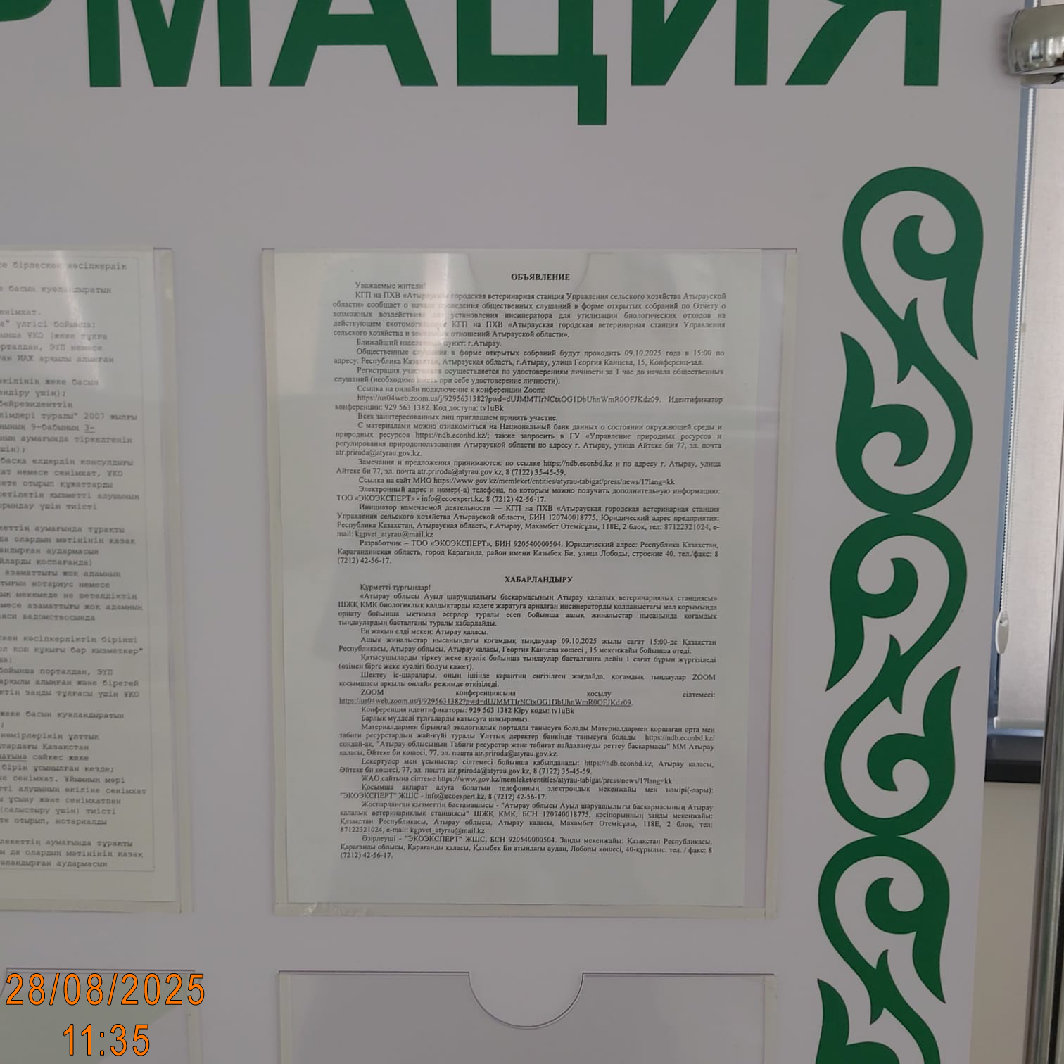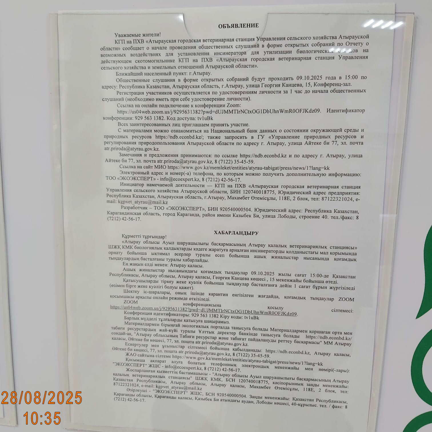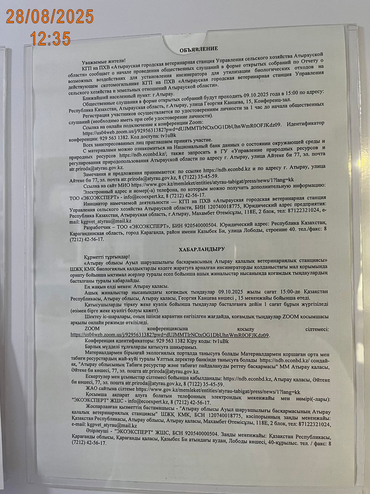 3. Общественные слушания организованны: Управление природных ресурсов и регулирования природопользования Атырауской области, atr.priroda@atyrau.gov.kz,