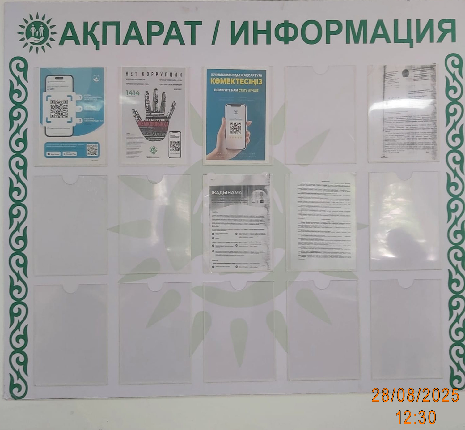 6.3. расположение мест, специально предназначенных для Размещения печатных объявлений (доски объявлений): Доска объявлений: Отдел № 1 г.Атырау по обслуживанию населения, пр. Абулхаир Хана, 66; Отдел № 3г.Атырау по обслуживанию населения, пр. Азаттык, 96Б; Отдел № 2 г.Атырау по обслуживанию населения, улица Муса Баймуханова улица, 16а, Доска объявлений с.Еркинкала: ул. Шарипа Тусипкалиева, 13, Доска объявлений Пром.зоны "Черная речка": Сарыозек м-н, Атырау, Атырау городская администрация, 22Б.
