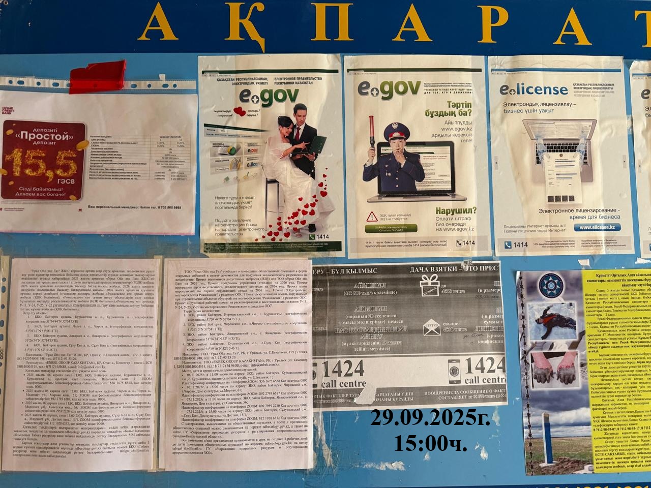 6. Объявление о проведении общественных слушаний на казахском и русском языках будет распространено следующими способами: