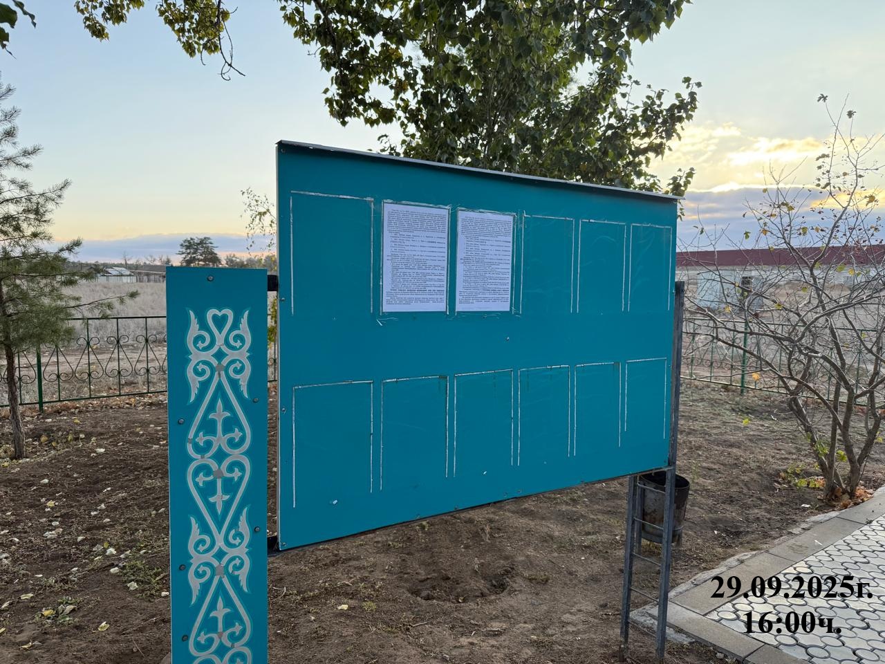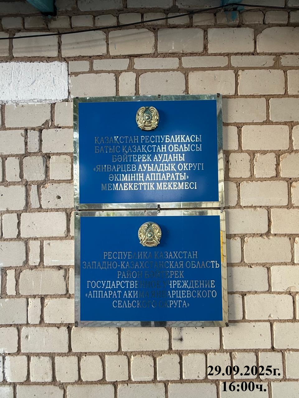 6.3. расположение мест, специально предназначенных для Размещения печатных объявлений (доски объявлений): Западно-Казахстанская область, район Бәйтерек, Январцевский с.о., РГУ "Аппарат акима Январцевского с.о."