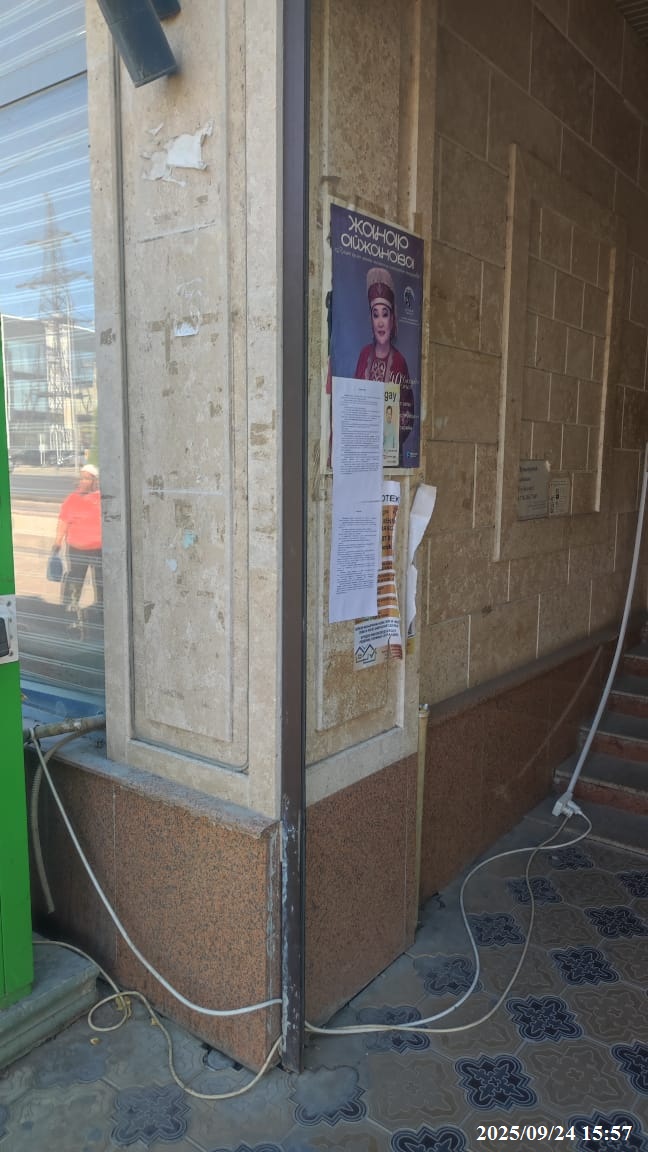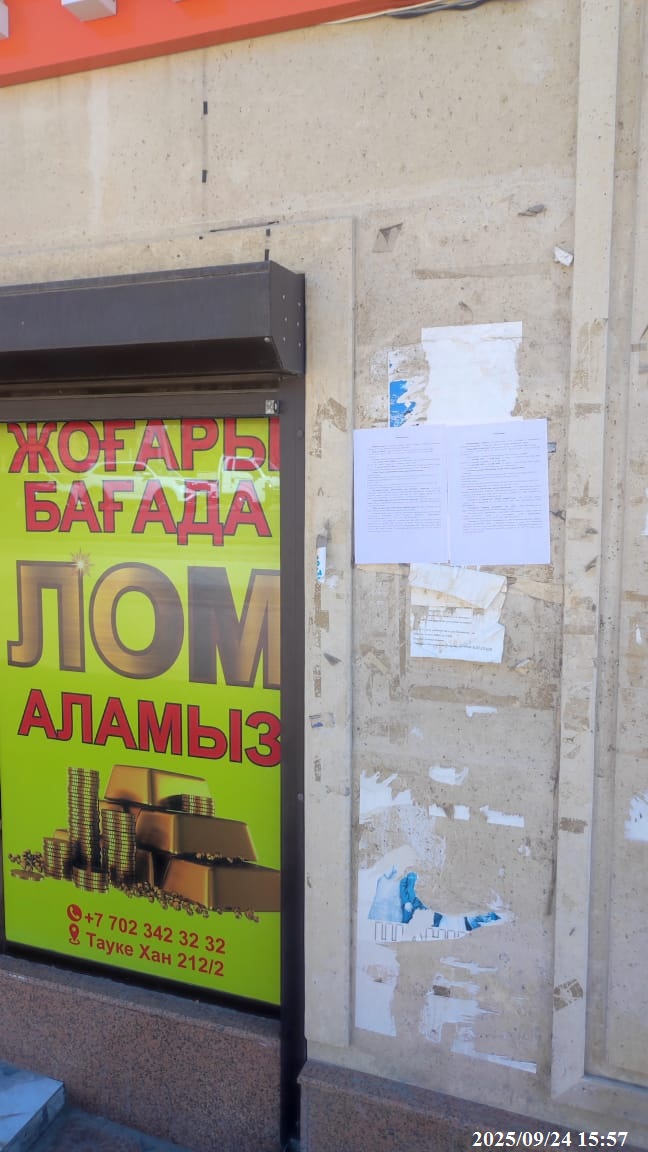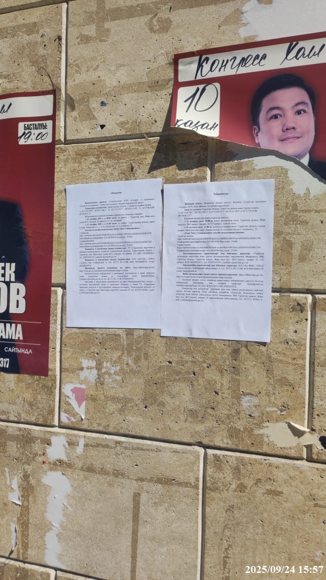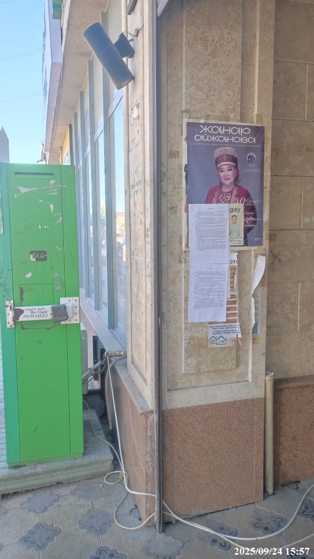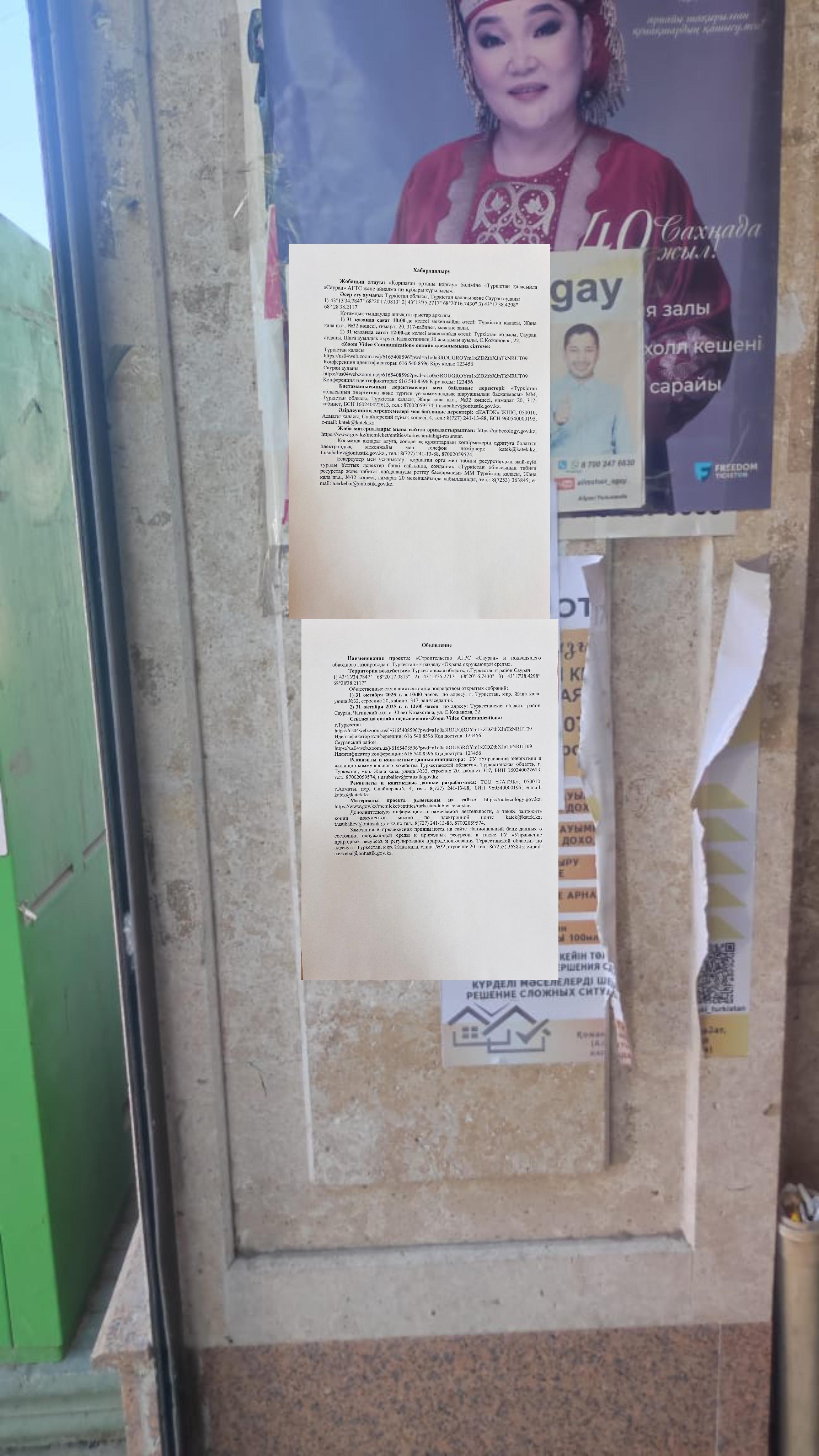 6.3. расположение мест, специально предназначенных для Размещения печатных объявлений (доски объявлений): доска объявлений в г. Туркестан