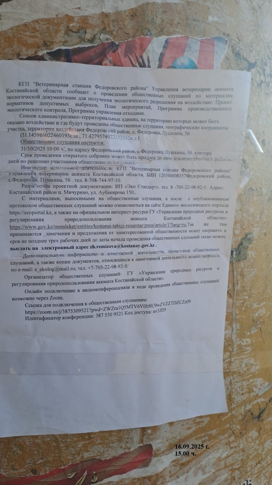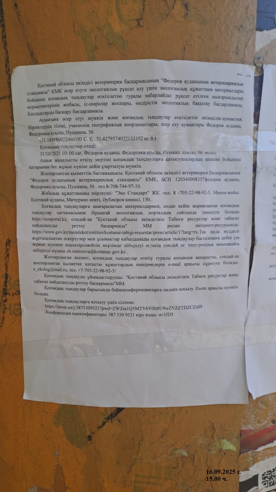 3. Общественные слушания организованны: Управление природных ресурсов и регулирования природопользования Костанайской области, zh.remizova@kostanay.gov.kz, 87142 546166,