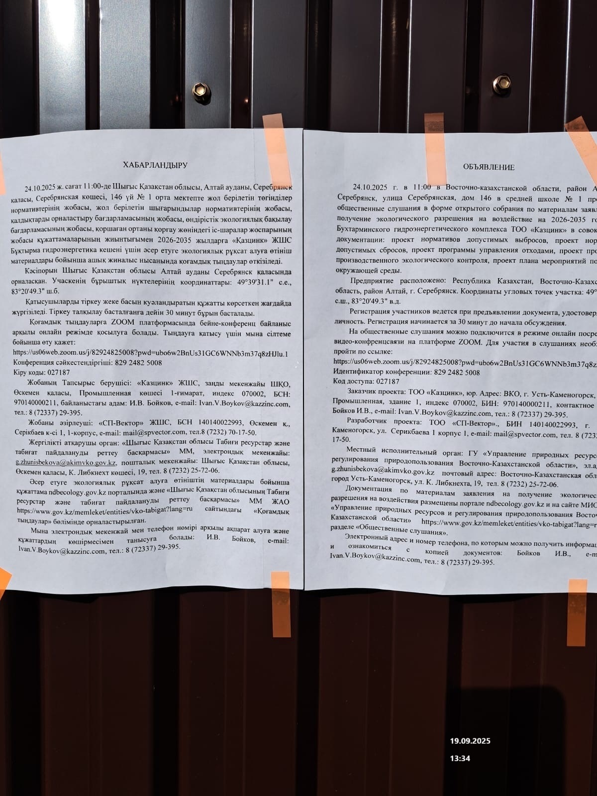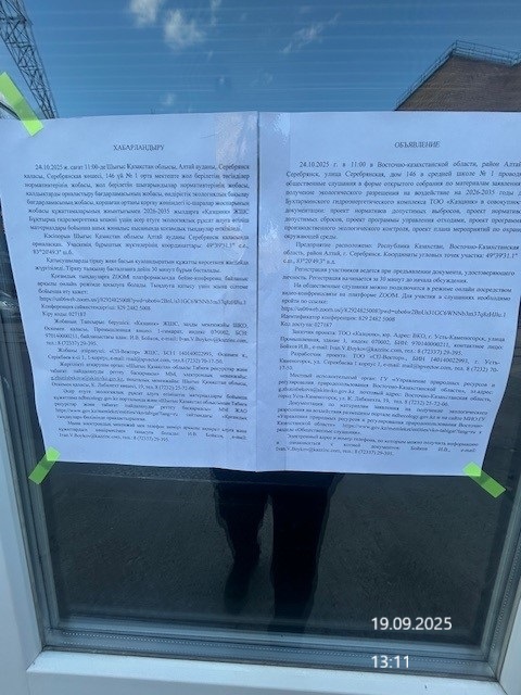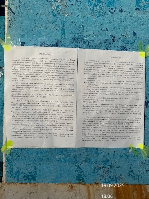 3. Общественные слушания организованны: Управление природных ресурсов и регулирования природопользования Восточно-Казахстанской области, g.zhunisbekova@akimvko.gov.kz,