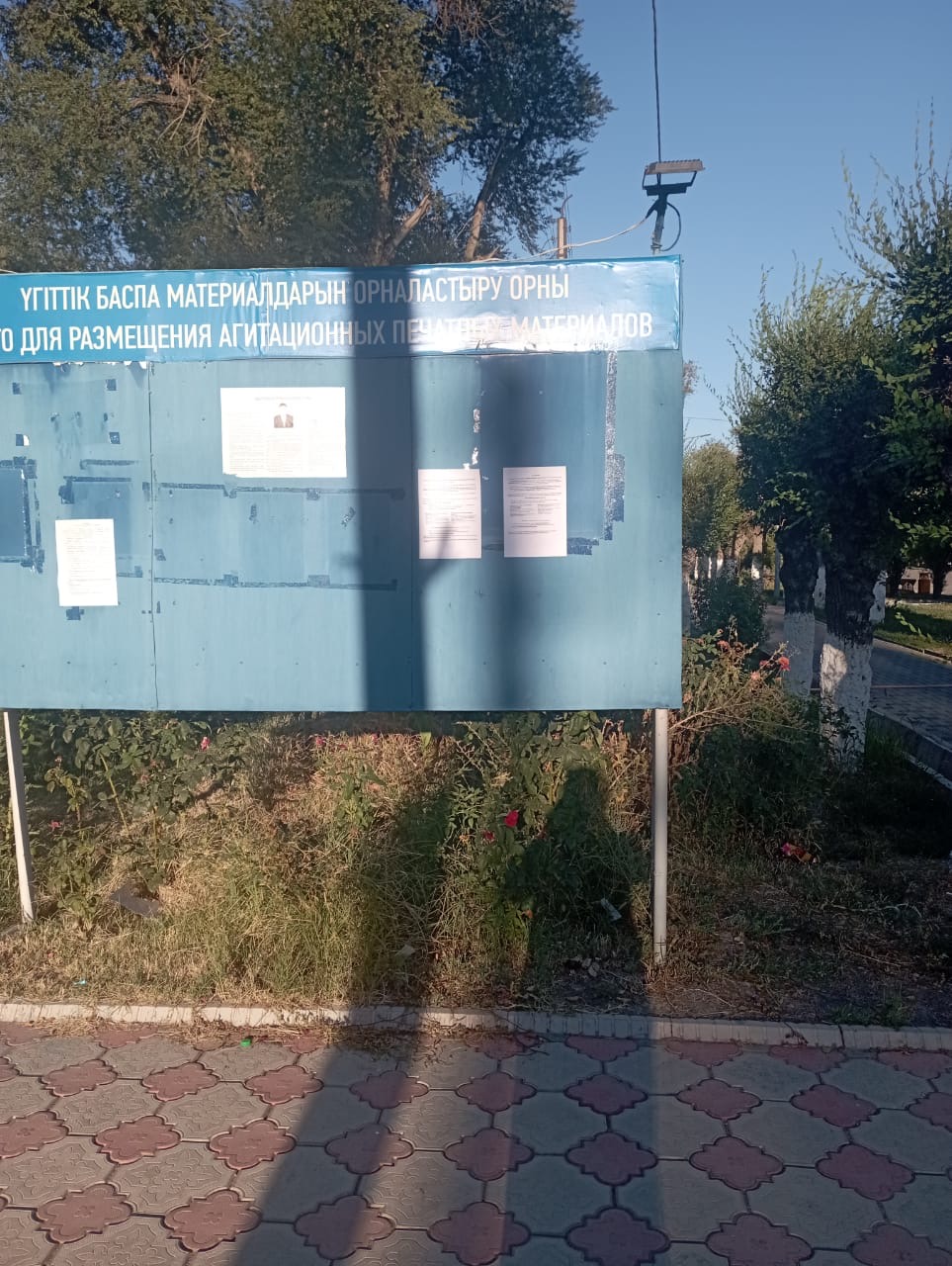 6.3. расположение мест, специально предназначенных для Размещения печатных объявлений (доски объявлений): КГУ Аппарат Акима Шуского района, КГУ "Аппарат акима Жана жолского сельского округа, КГУ "Аппарат акима Алгинского сельского округа, КГУ "Аппарат акима Ондирисского сельского округа, КГУ "Аппарат акима Толебийского сельского округа, КГУ "Аппарат акима Ондирисского сельского округа,