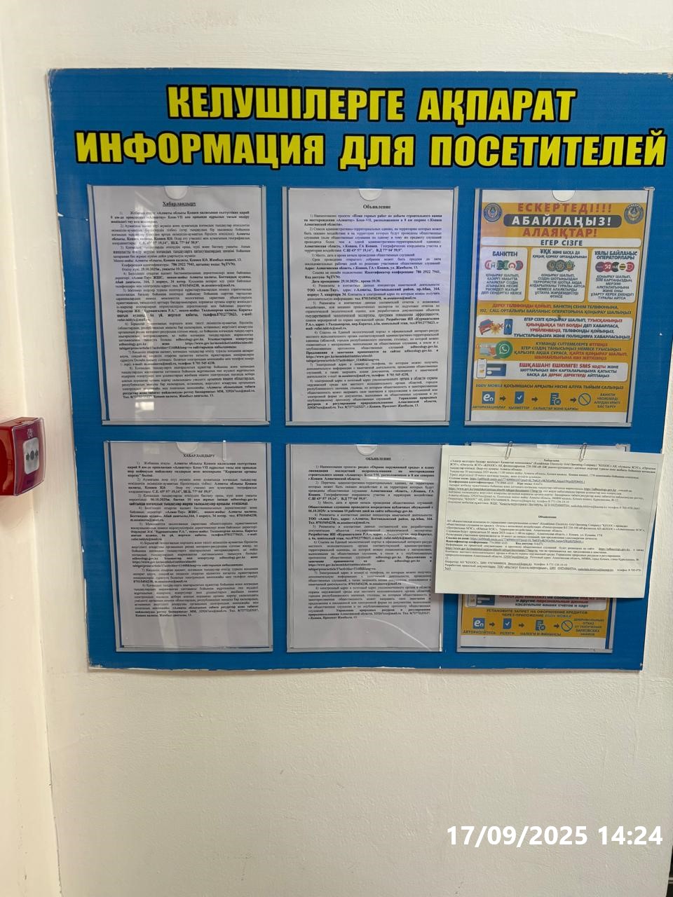 6.3. расположение мест, специально предназначенных для Размещения печатных объявлений (доски объявлений): Алматинская область г.Конаев, ГА Конаев