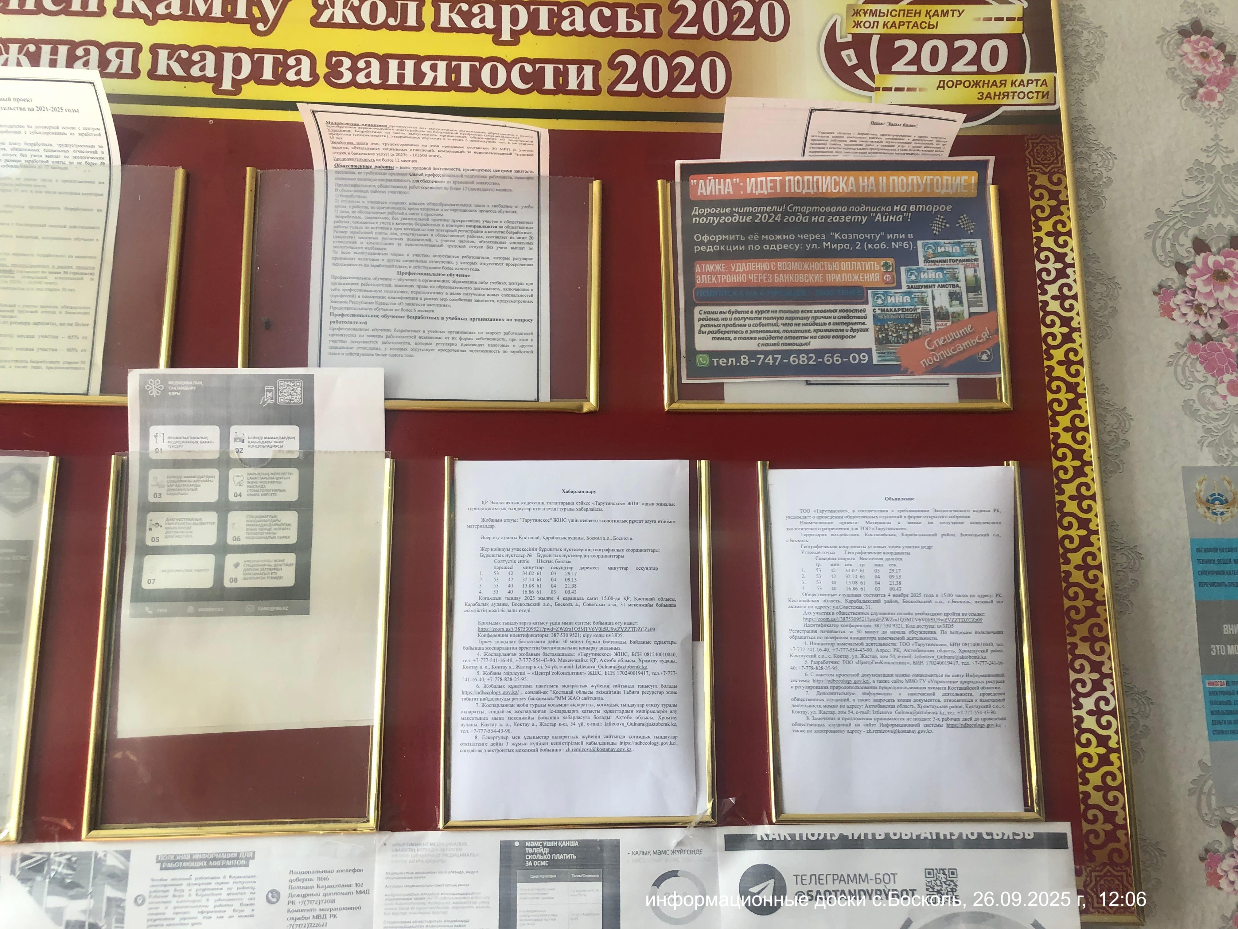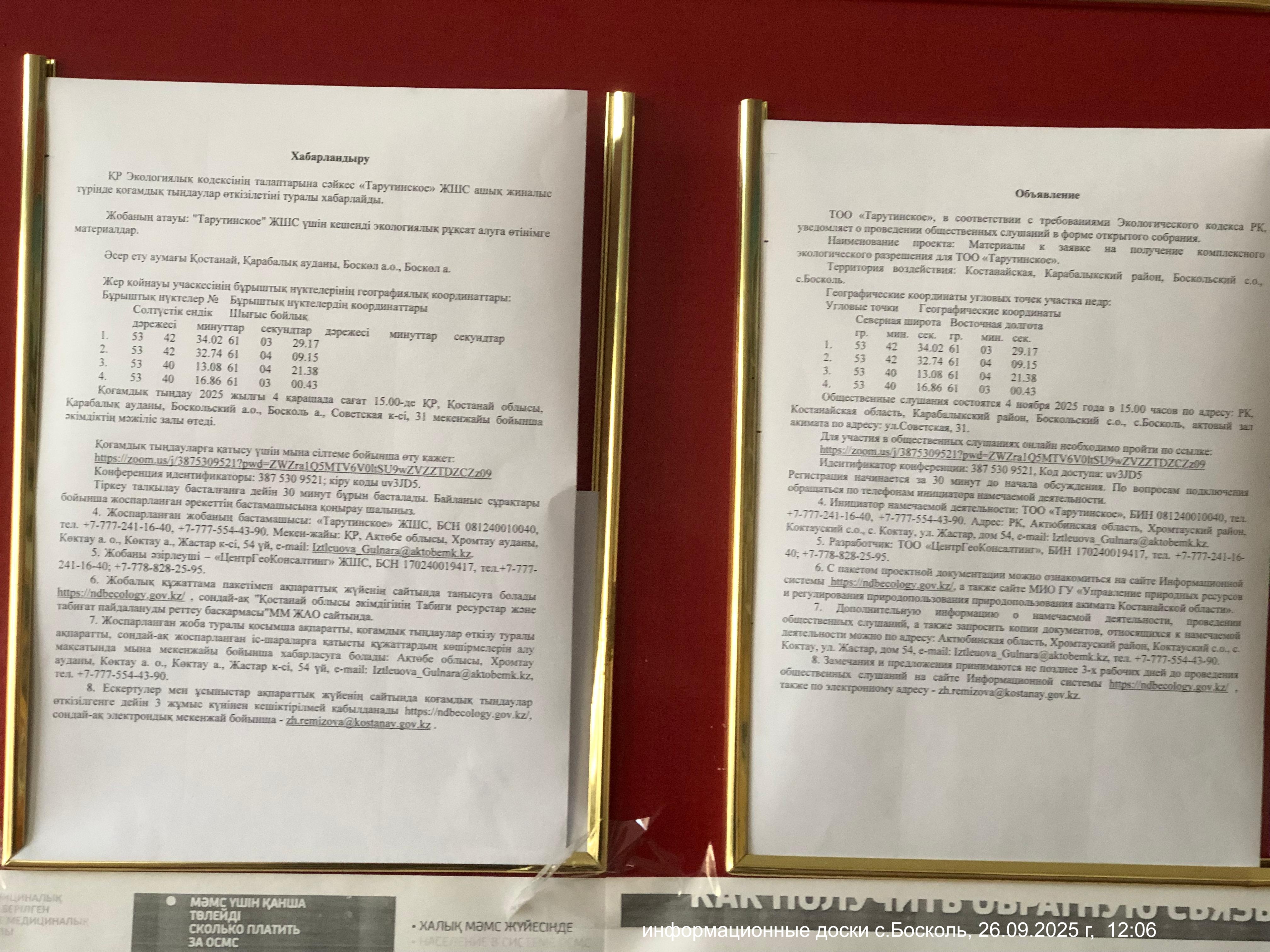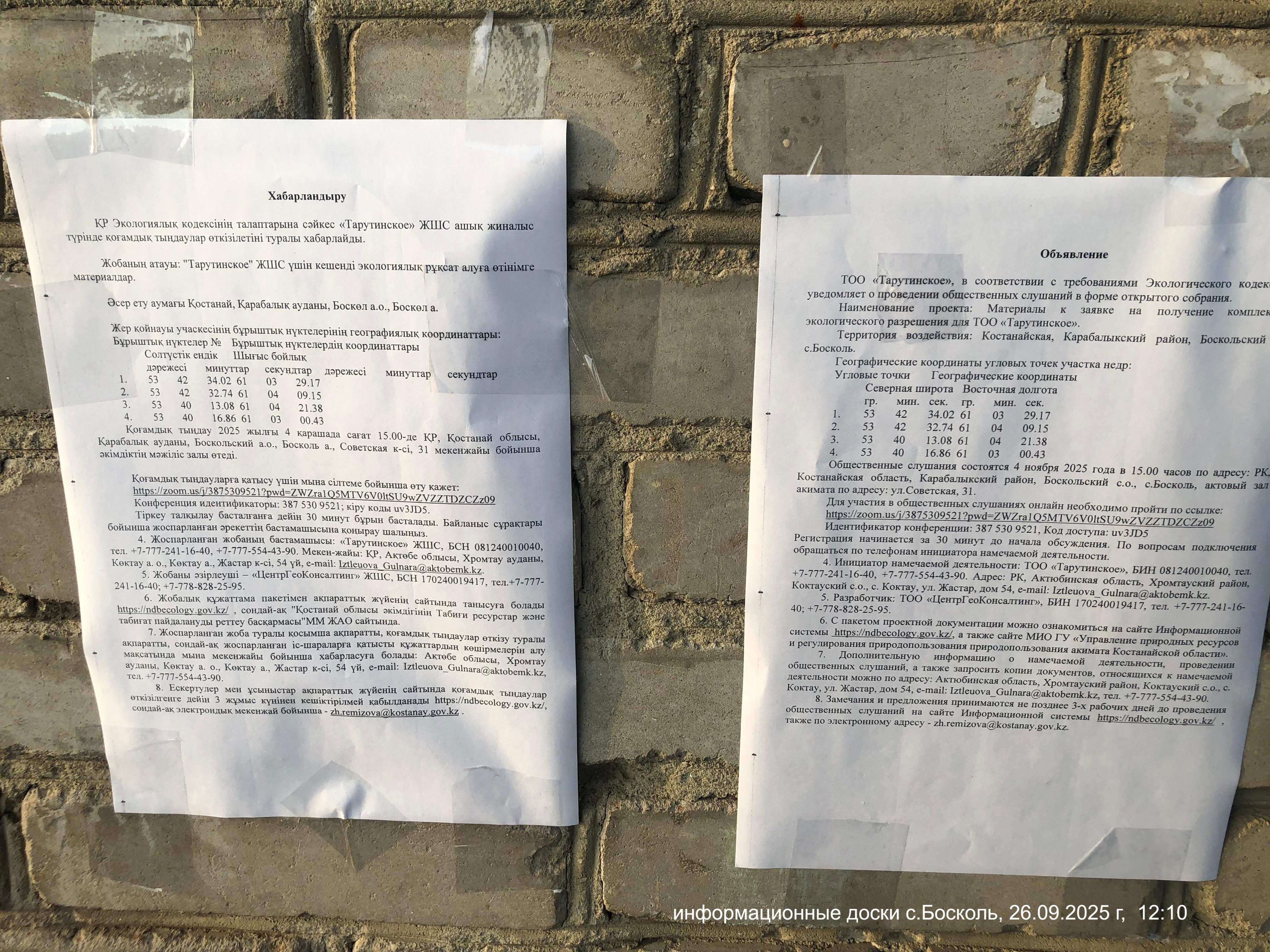 3. Общественные слушания организованны: Управление природных ресурсов и регулирования природопользования Костанайской области, zh.remizova@kostanay.gov.kz, 87142 546166,