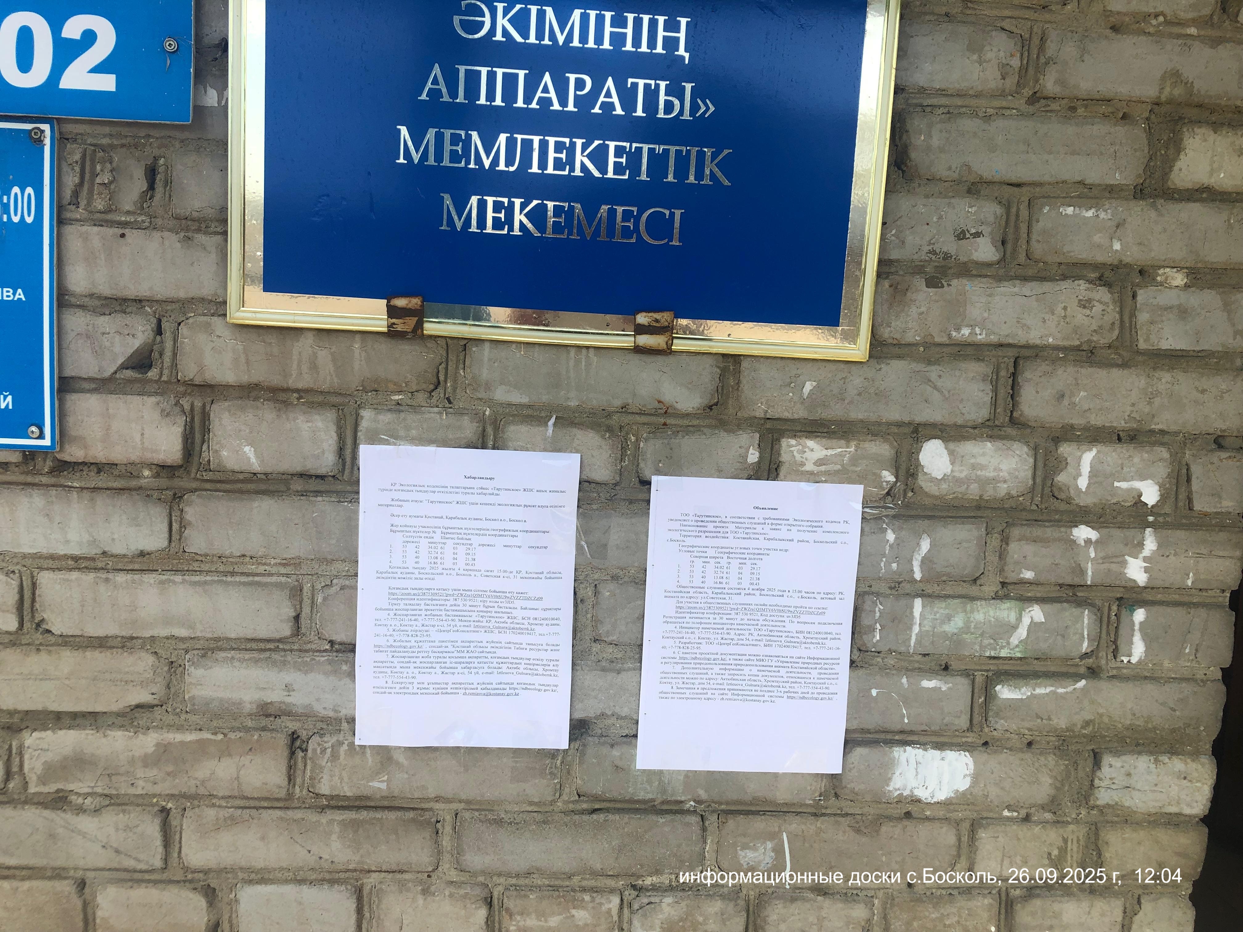 1.2. Место проведения: Костанайская область, Карабалыкский район, Боскольский с.о., с.Босколь, актовый зал акимата по адресу: ул.Советская, 31.
