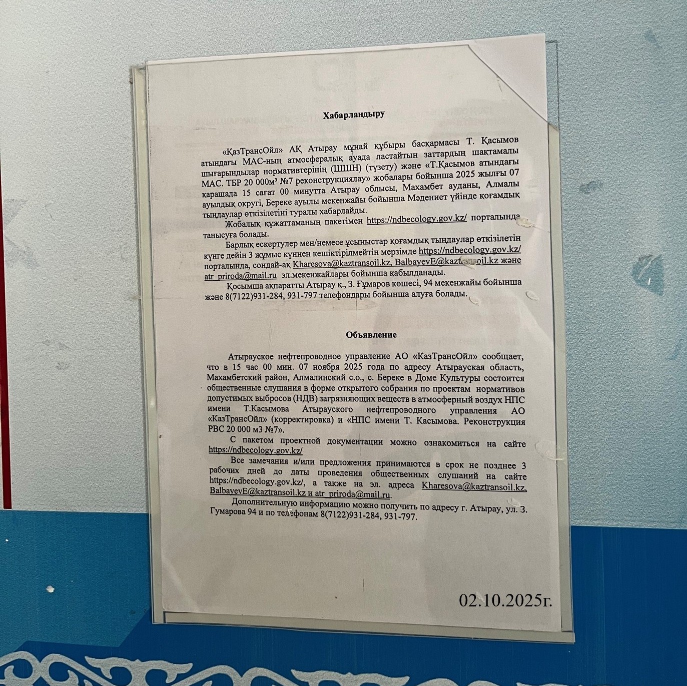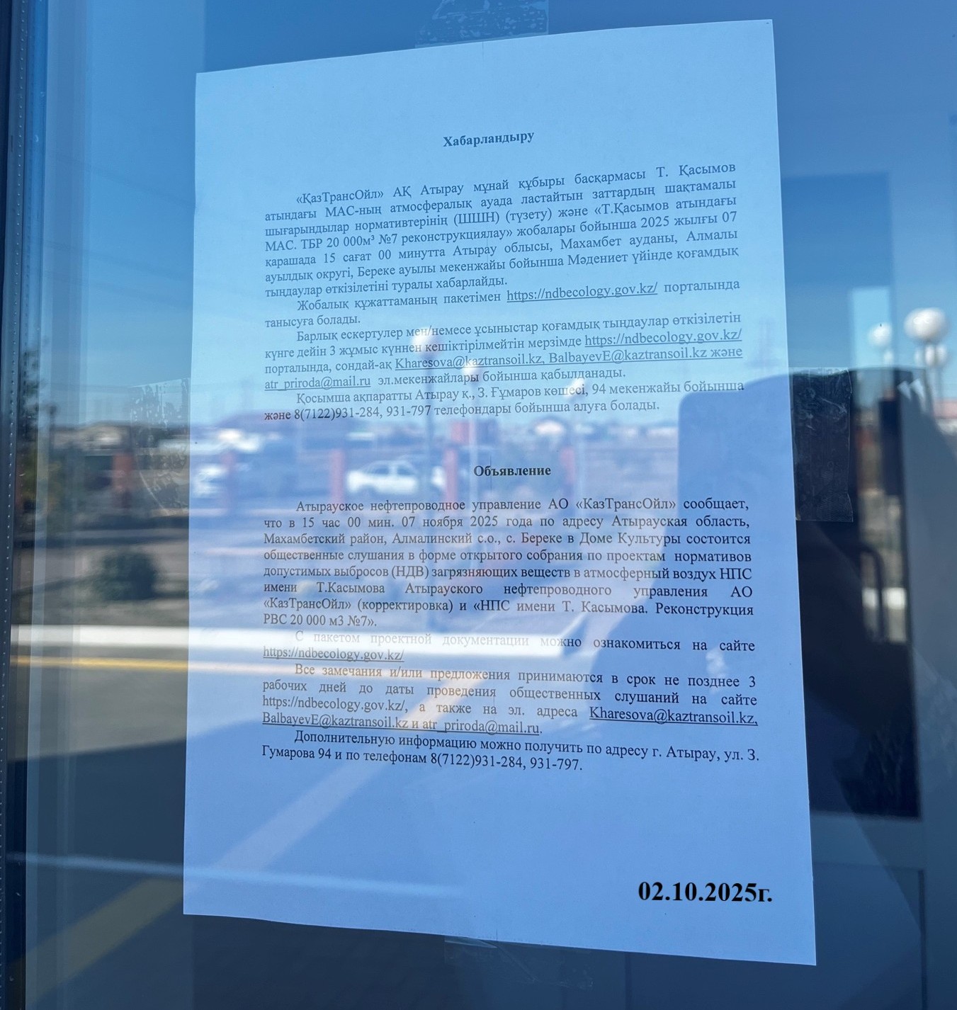 3. Общественные слушания организованны: Управление природных ресурсов и регулирования природопользования Атырауской области, atr.priroda@atyrau.gov.kz,