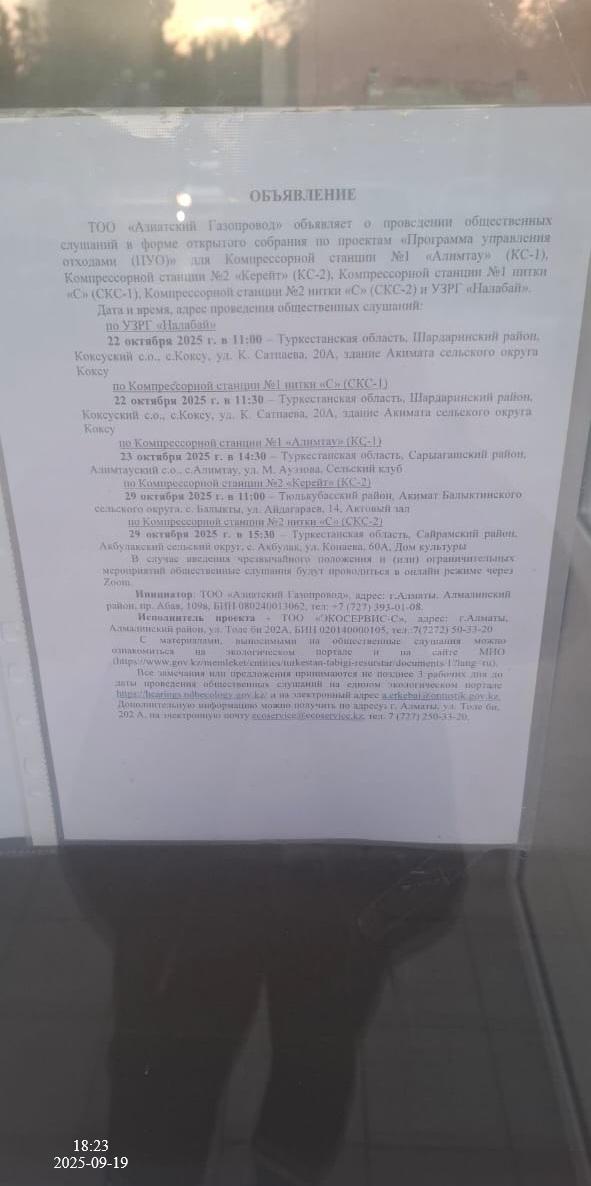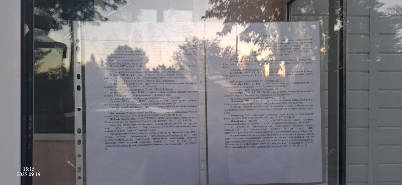 6. Объявление о проведении общественных слушаний на казахском и русском языках будет распространено следующими способами: