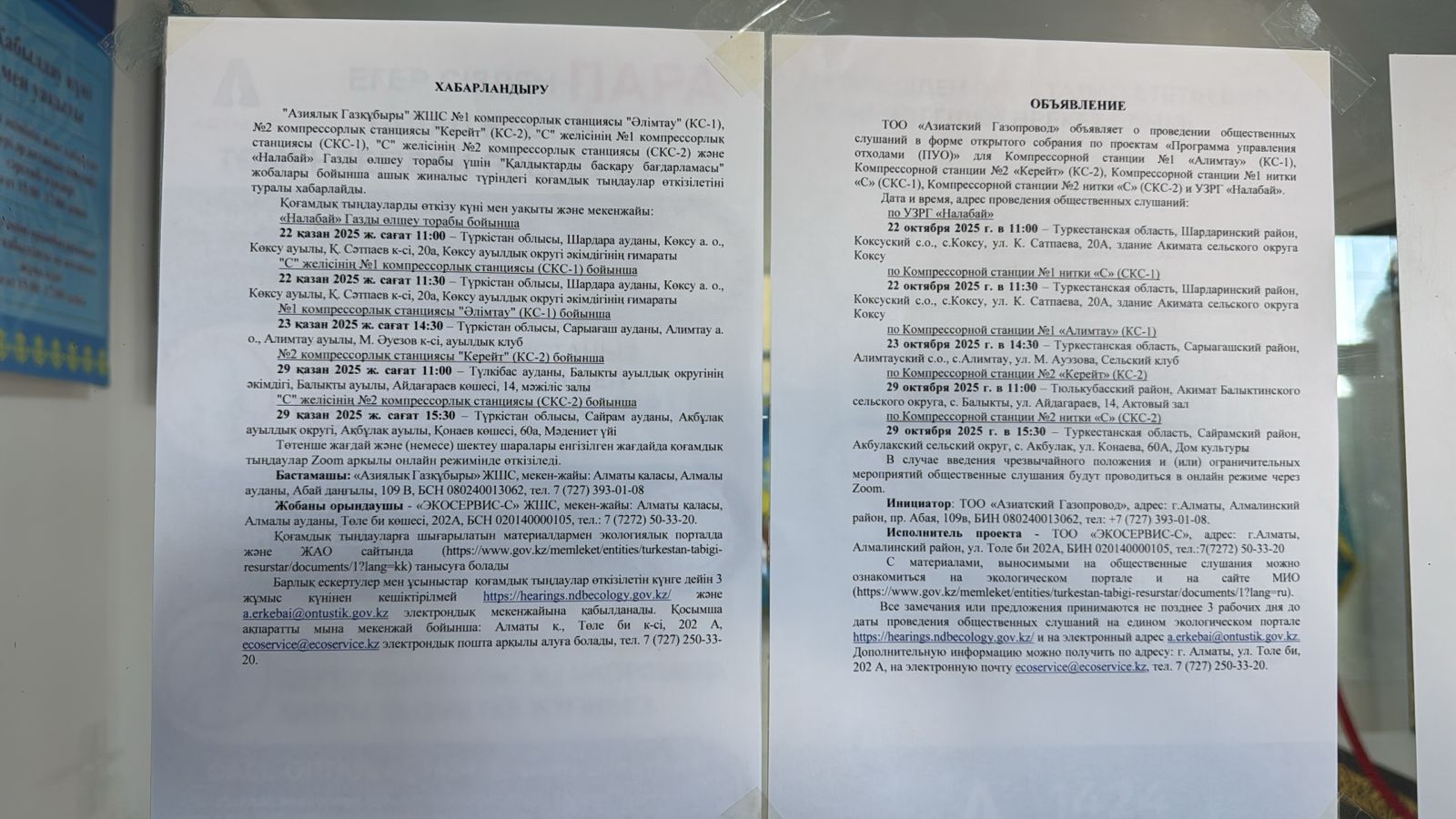 3. Общественные слушания организованны: Управление природных ресурсов и регулирования природопользования Туркестанской области, a.erkebai@ontustik.gov.kz,