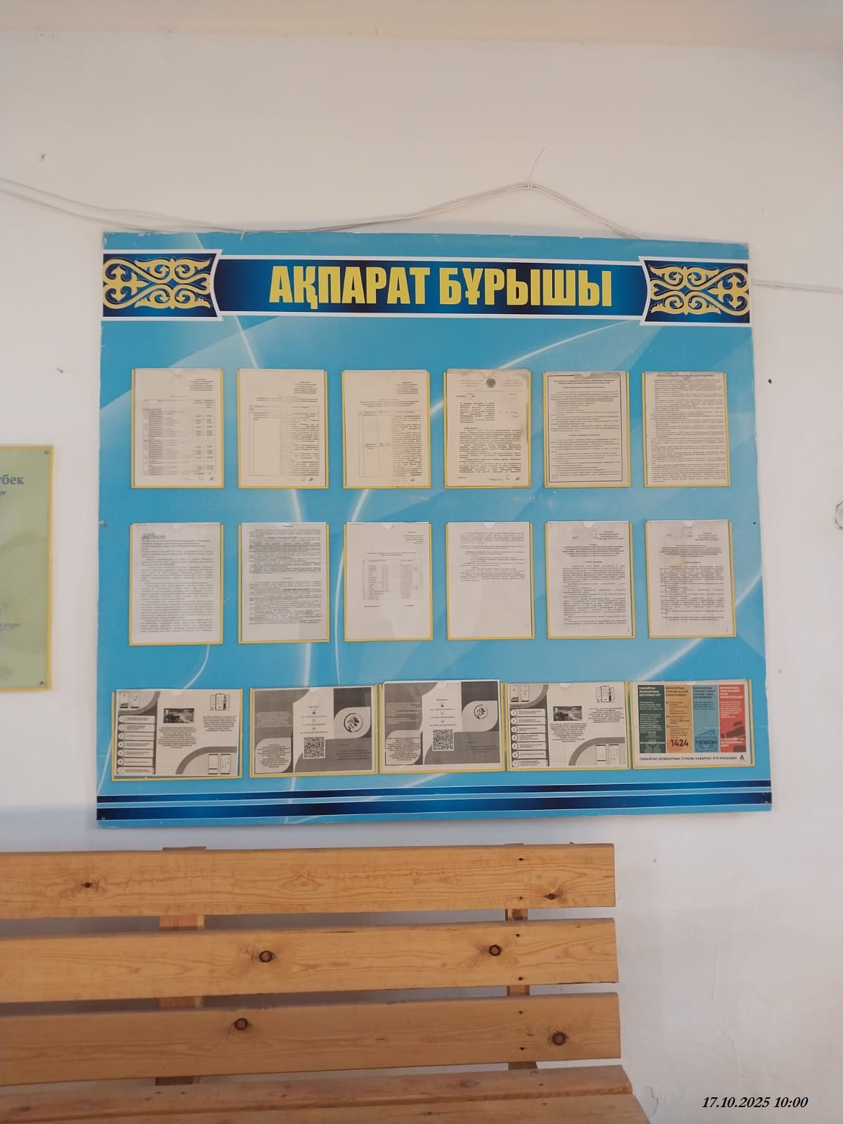 6.3. расположение мест, специально предназначенных для Размещения печатных объявлений (доски объявлений): Улица Казбек би 24, доска объявлений около здания акимата