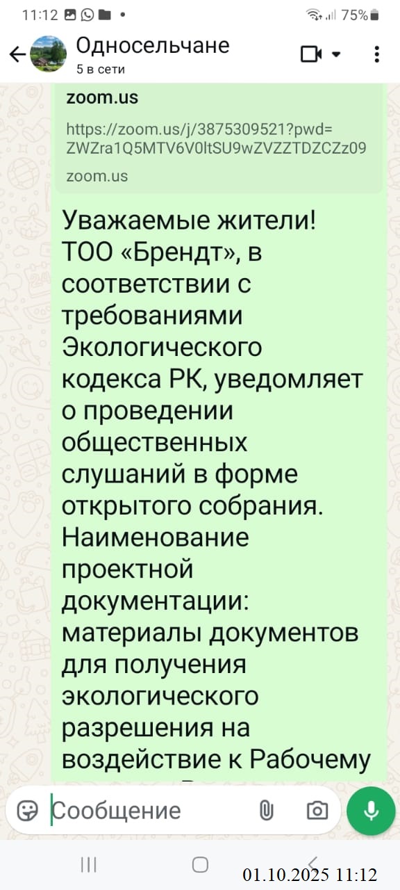 1. Инициатор: Товарищество с ограниченной ответственностью ""Брендт""