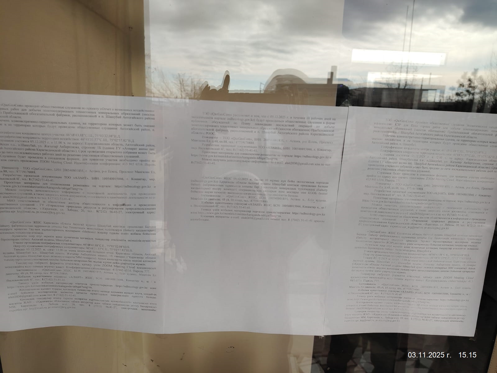 3. Общественные слушания организованны: Управление природных ресурсов и регулирования природопользования Карагандинской области, expertiza.upr_krg@mail.ru,