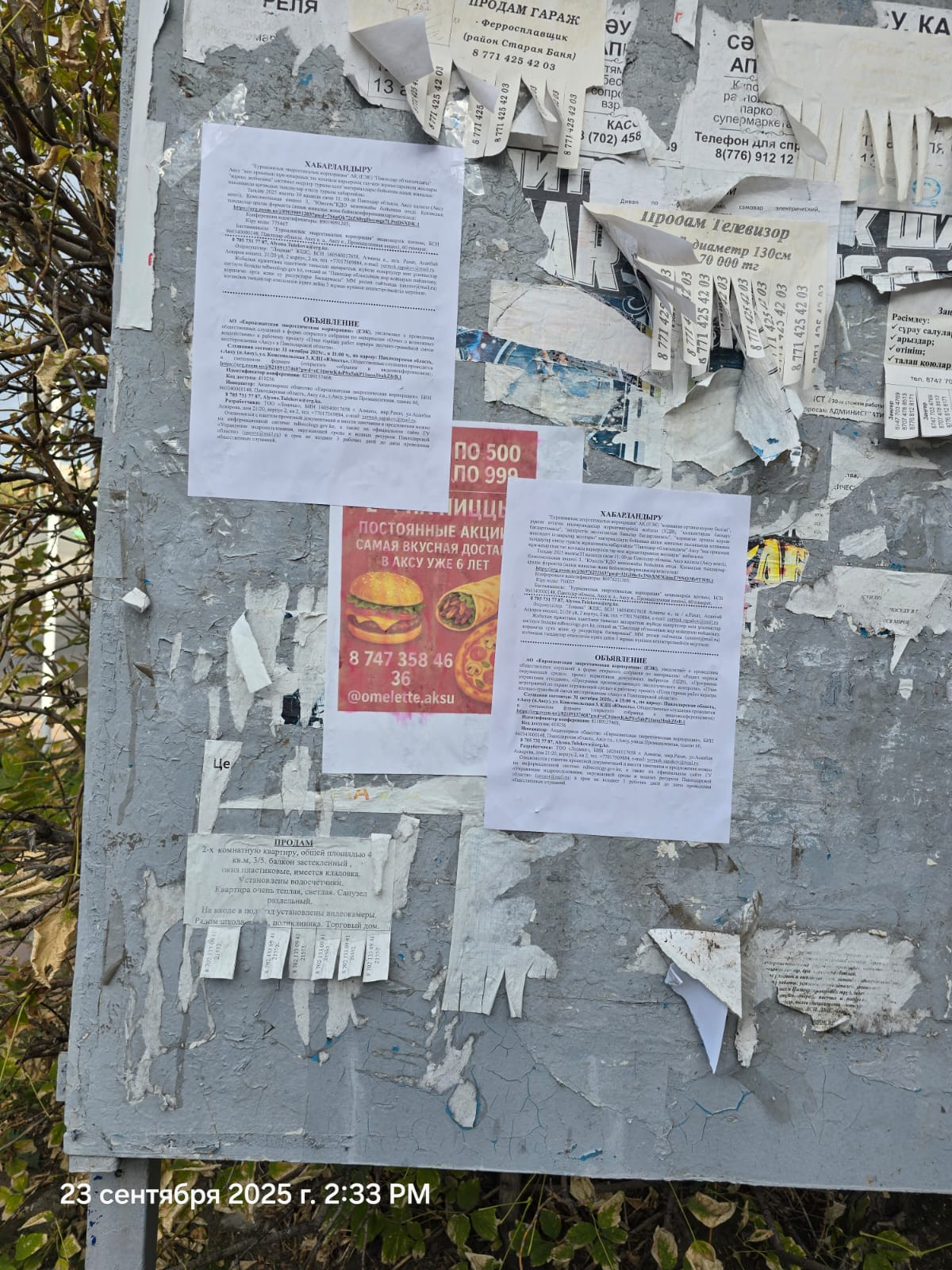 6. Объявление о проведении общественных слушаний на казахском и русском языках будет распространено следующими способами:
