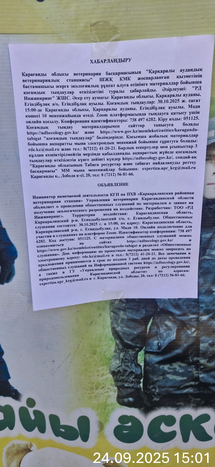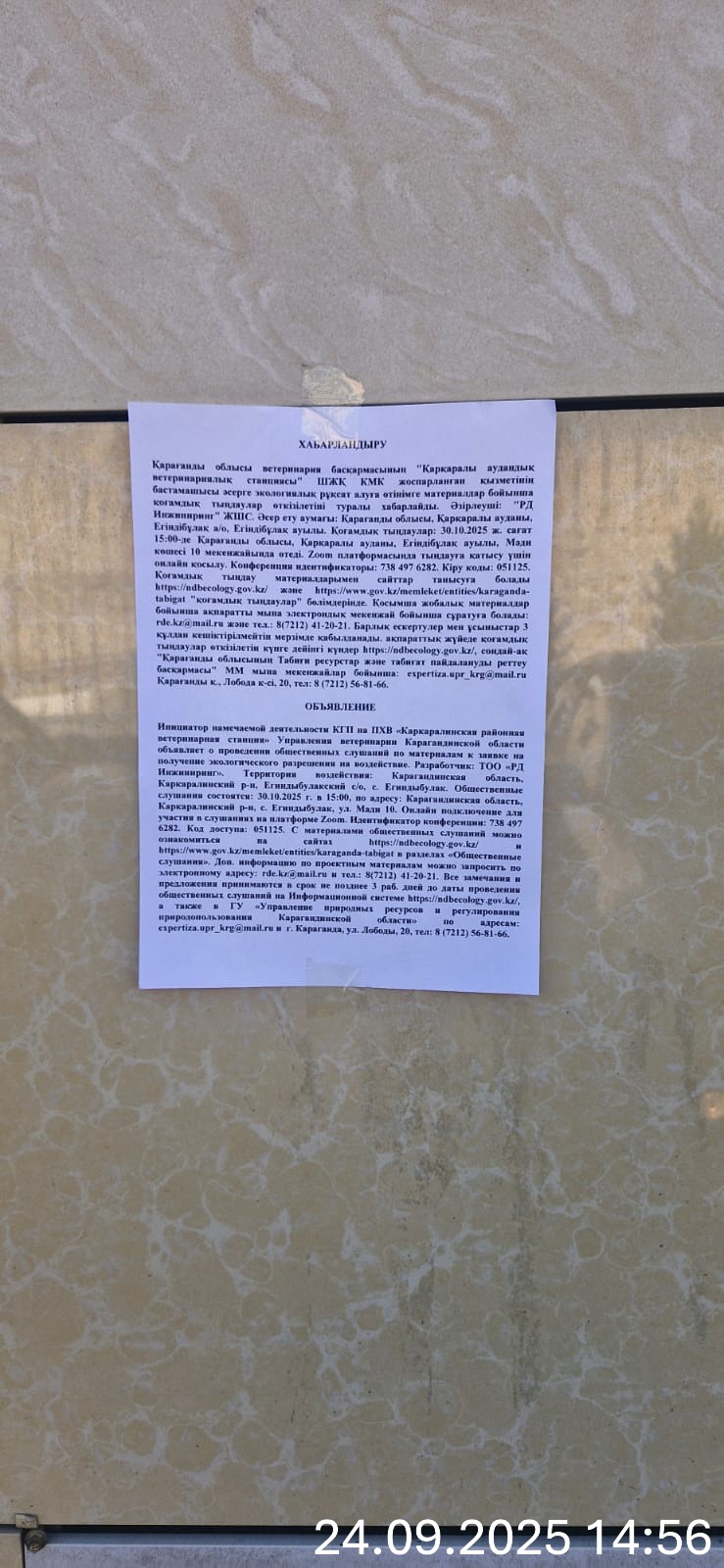 3. Общественные слушания организованны: Управление природных ресурсов и регулирования природопользования Карагандинской области, expertiza.upr_krg@mail.ru,