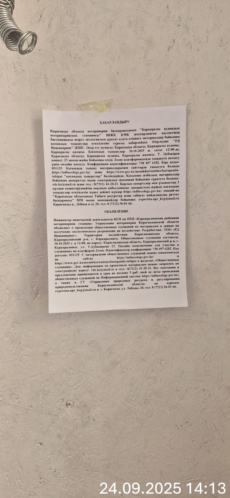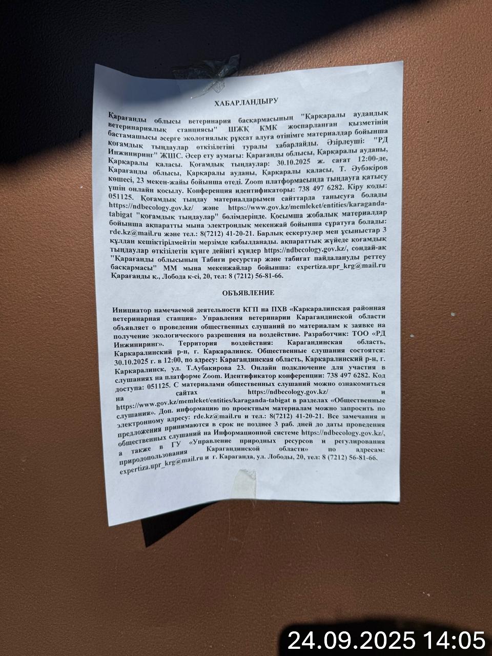 3. Общественные слушания организованны: Управление природных ресурсов и регулирования природопользования Карагандинской области, expertiza.upr_krg@mail.ru,