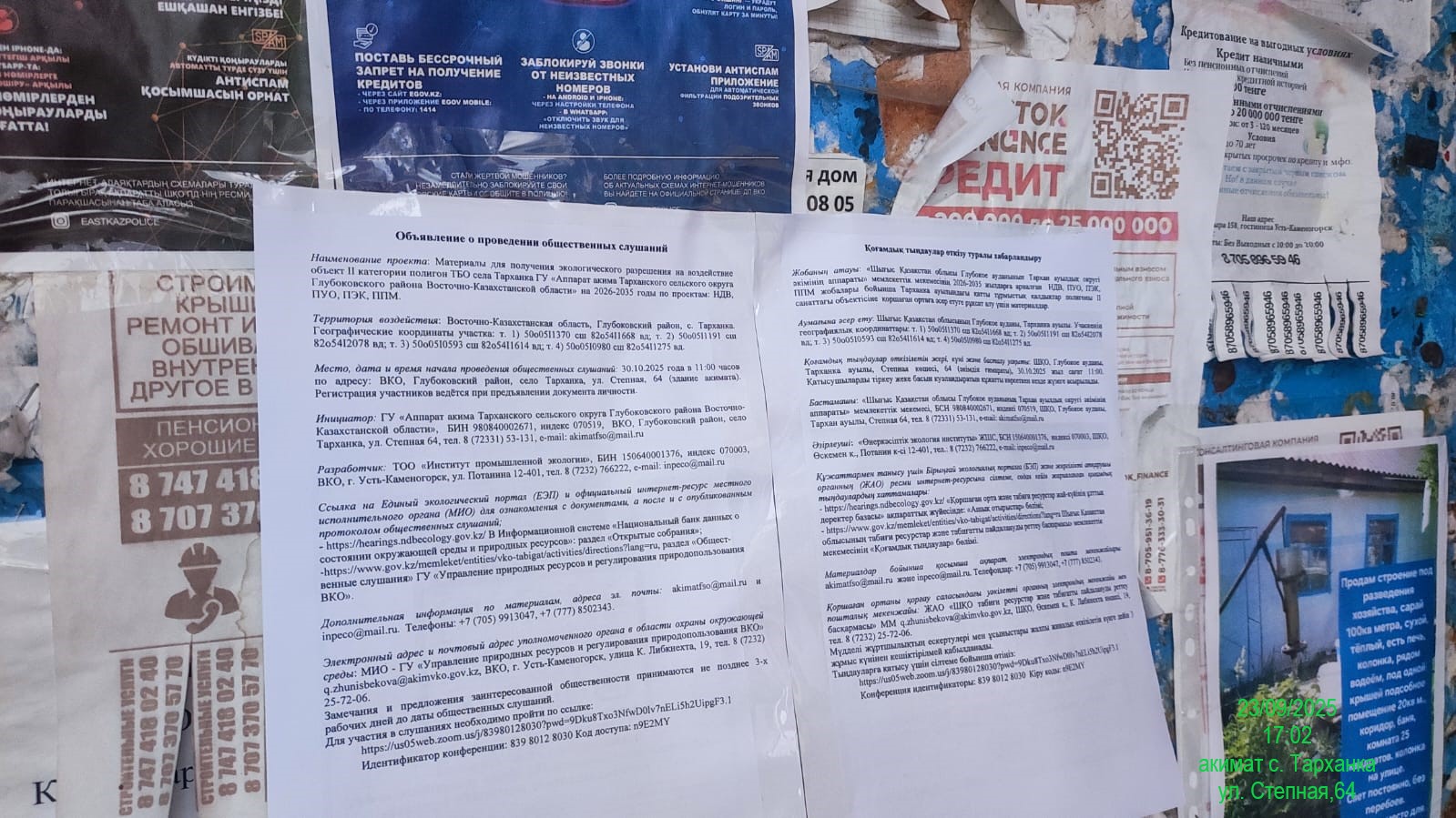 6. Объявление о проведении общественных слушаний на казахском и русском языках будет распространено следующими способами: