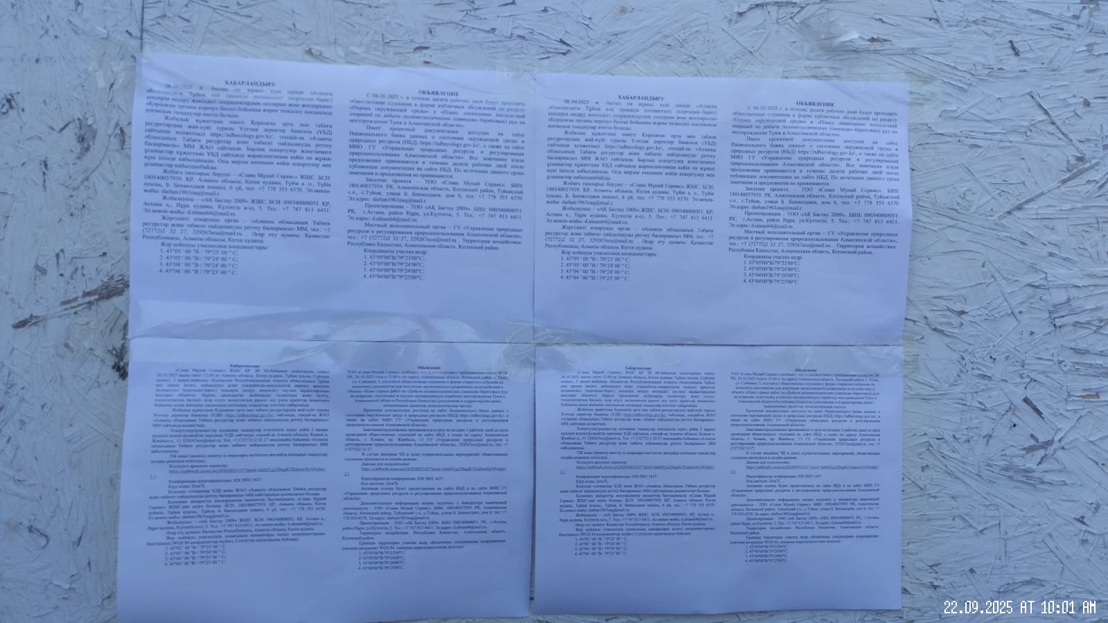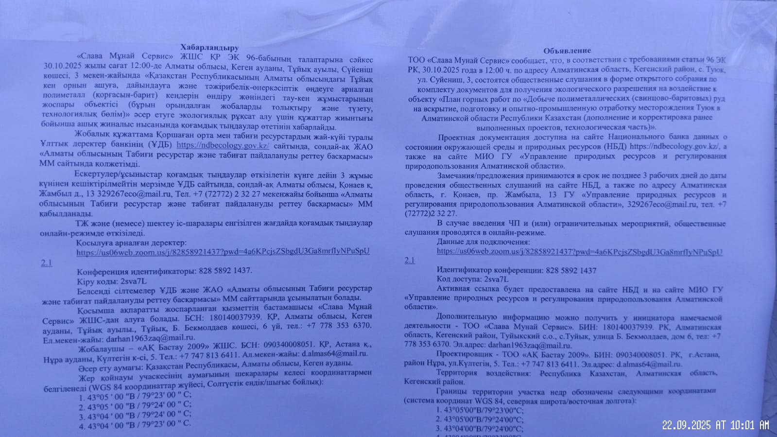 3. Общественные слушания организованны: Управление природных ресурсов и регулирования природопользования Алматинской области, 329267eco@mail.ru,