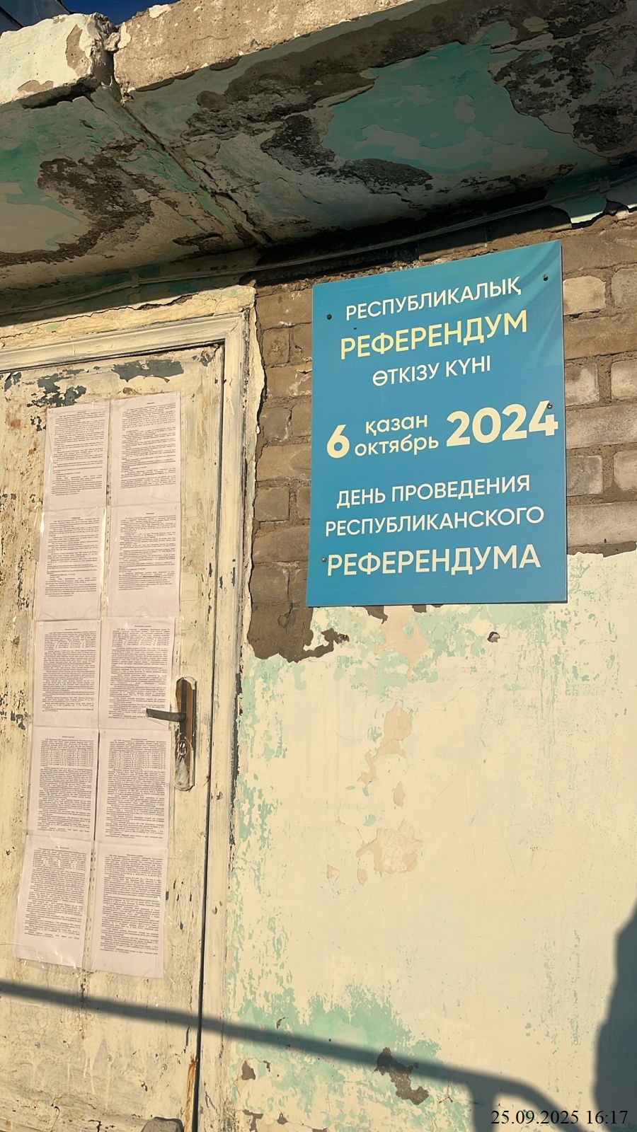 6.3. расположение мест, специально предназначенных для Размещения печатных объявлений (доски объявлений): Доска объявлений акимата, общественные места