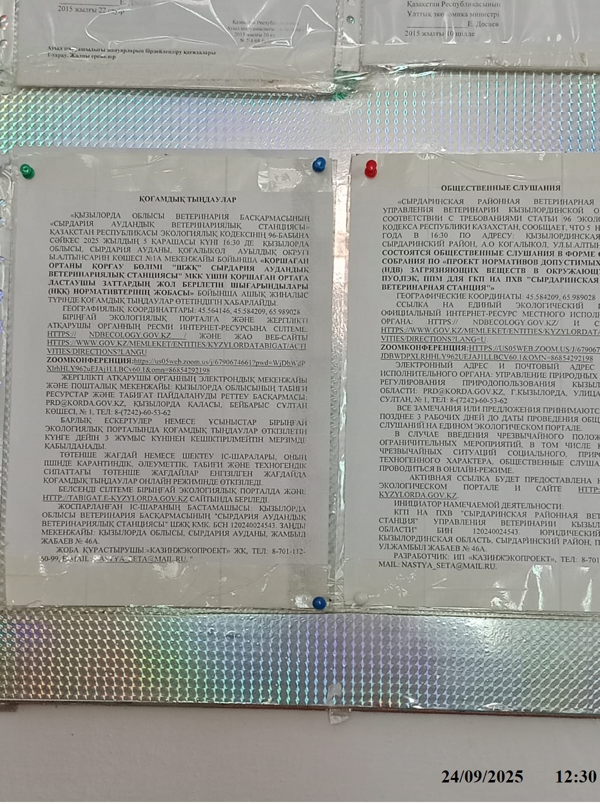 3. Общественные слушания организованны: Управление природных ресурсов и регулирования природопользования Кызылординской области, prd@korda.gov.kz 87242605362, 605369,