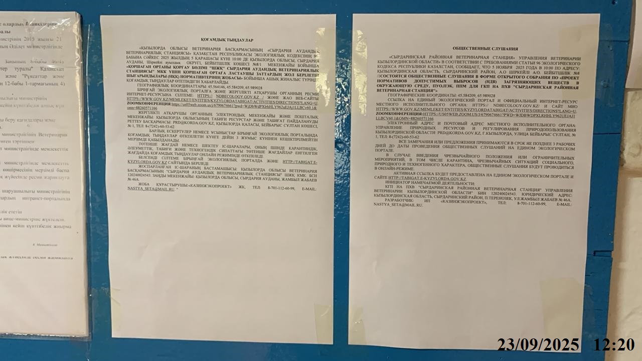 3. Общественные слушания организованны: Управление природных ресурсов и регулирования природопользования Кызылординской области, prd@korda.gov.kz 87242605362, 605369,
