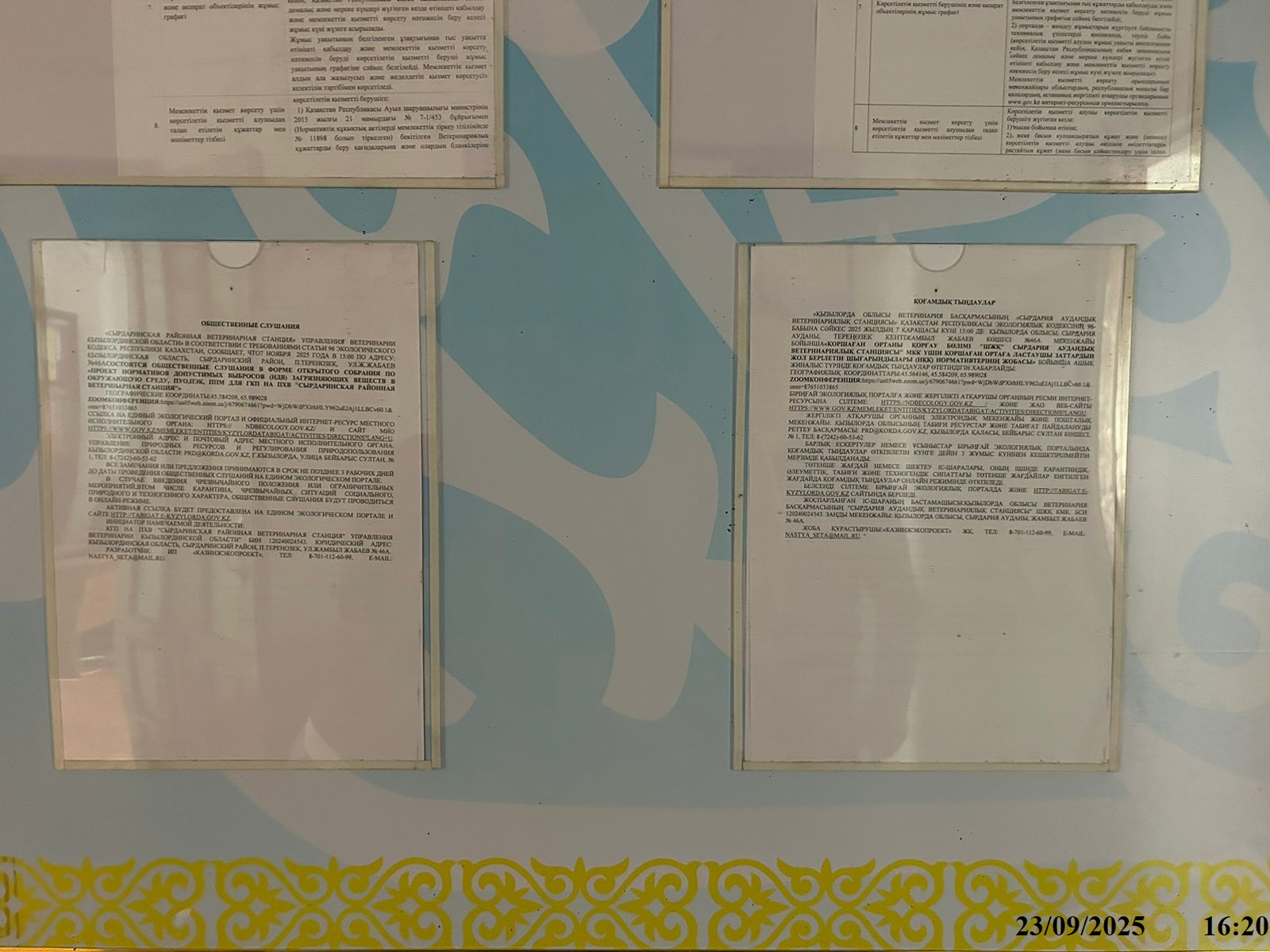 3. Общественные слушания организованны: Управление природных ресурсов и регулирования природопользования Кызылординской области, prd@korda.gov.kz 87242605362, 605369,