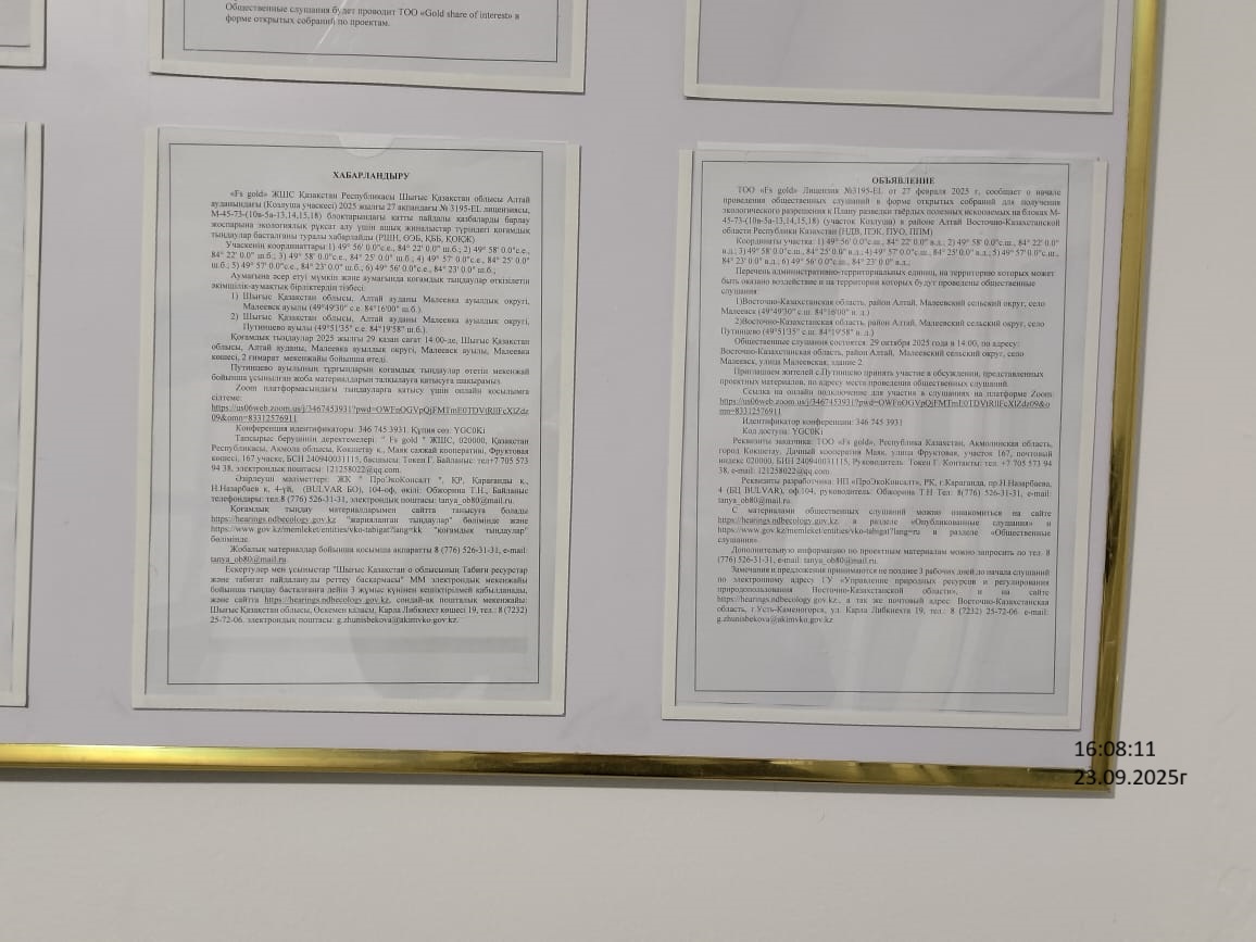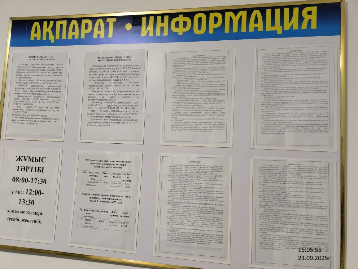 3. Общественные слушания организованны: Управление природных ресурсов и регулирования природопользования Восточно-Казахстанской области, g.zhunisbekova@akimvko.gov.kz,